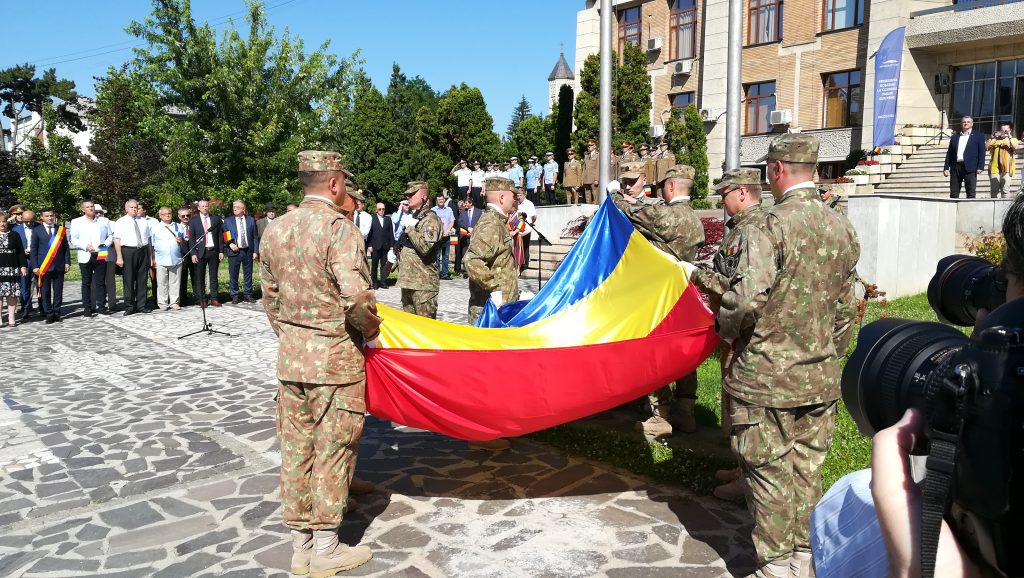În încheierea manifestărilor, după înalţărea drapelului pe catargul din faţa Prefecturii, unităţile militare au defilat prin faţa oficialităţilor.