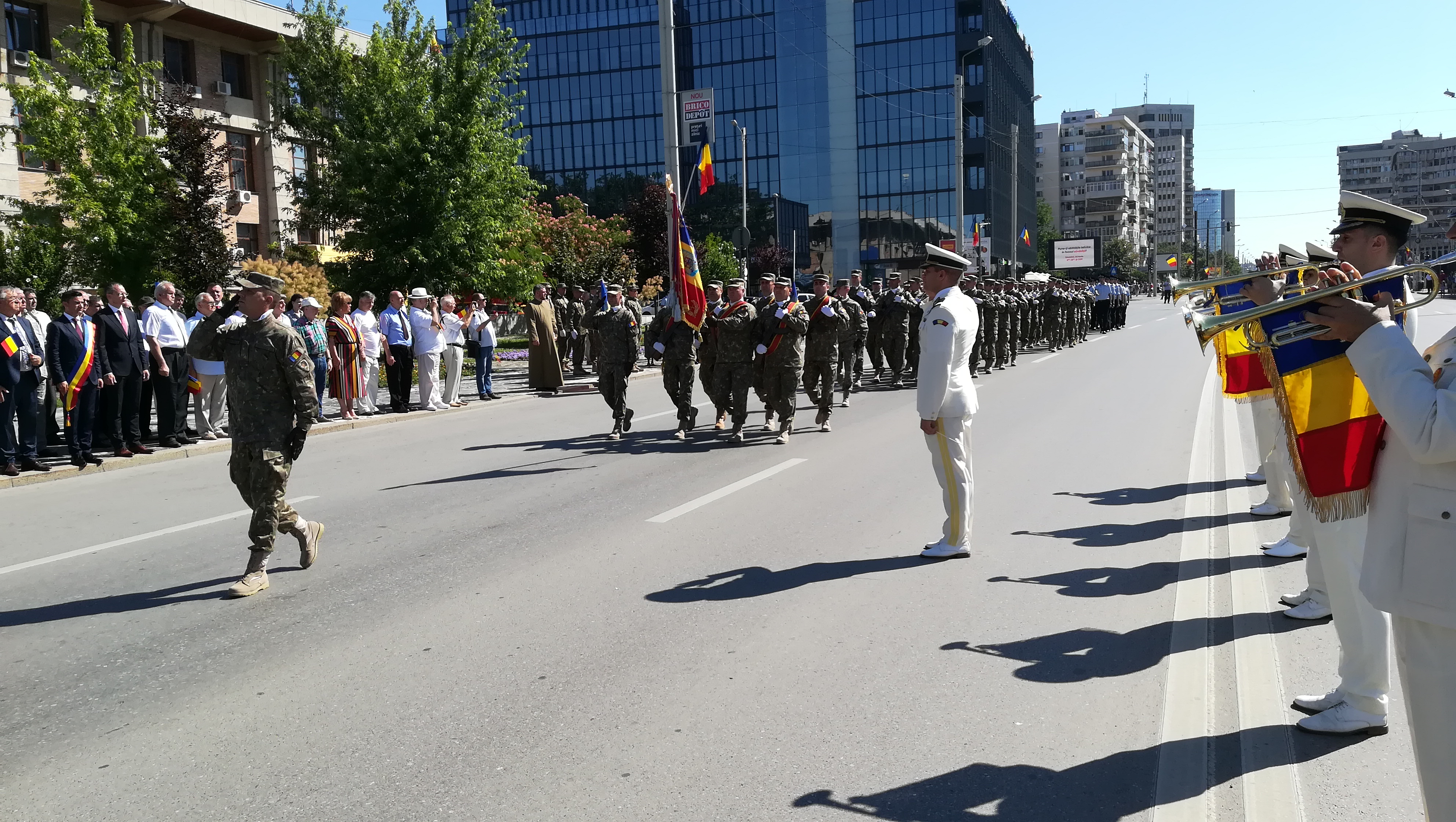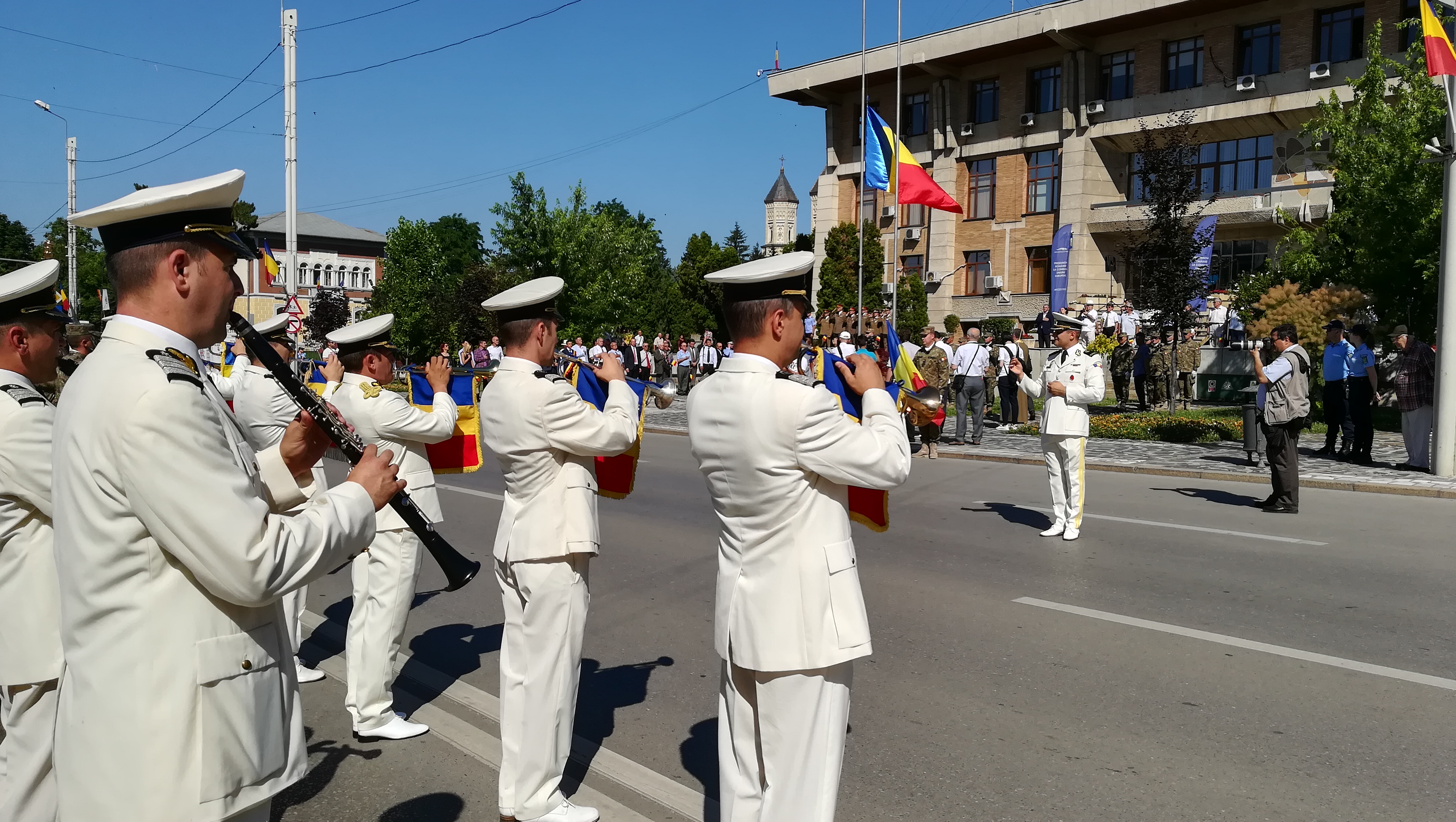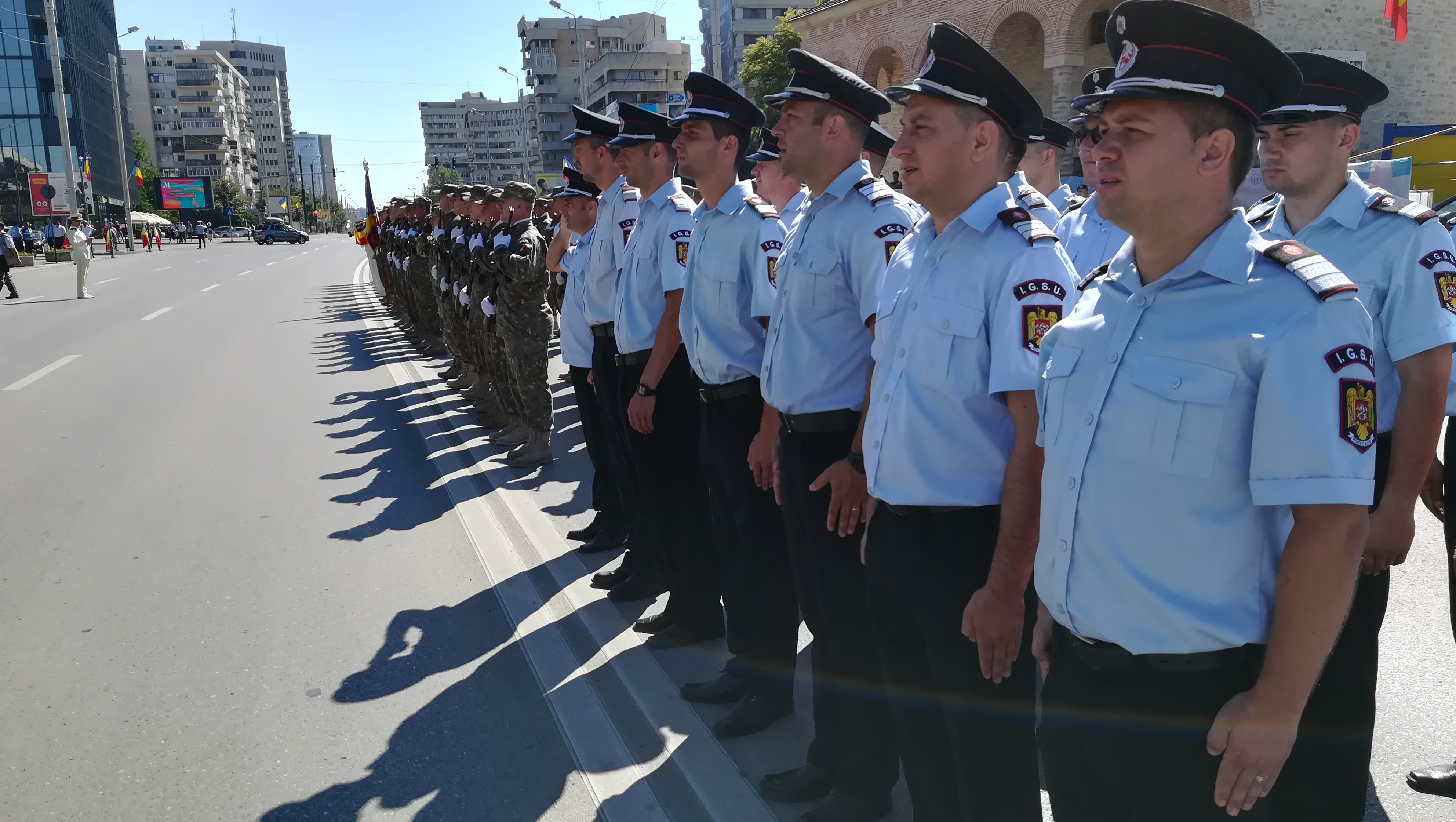 În încheierea manifestărilor, după înalţărea drapelului pe catargul din faţa Prefecturii, unităţile militare au defilat prin faţa oficialităţilor.