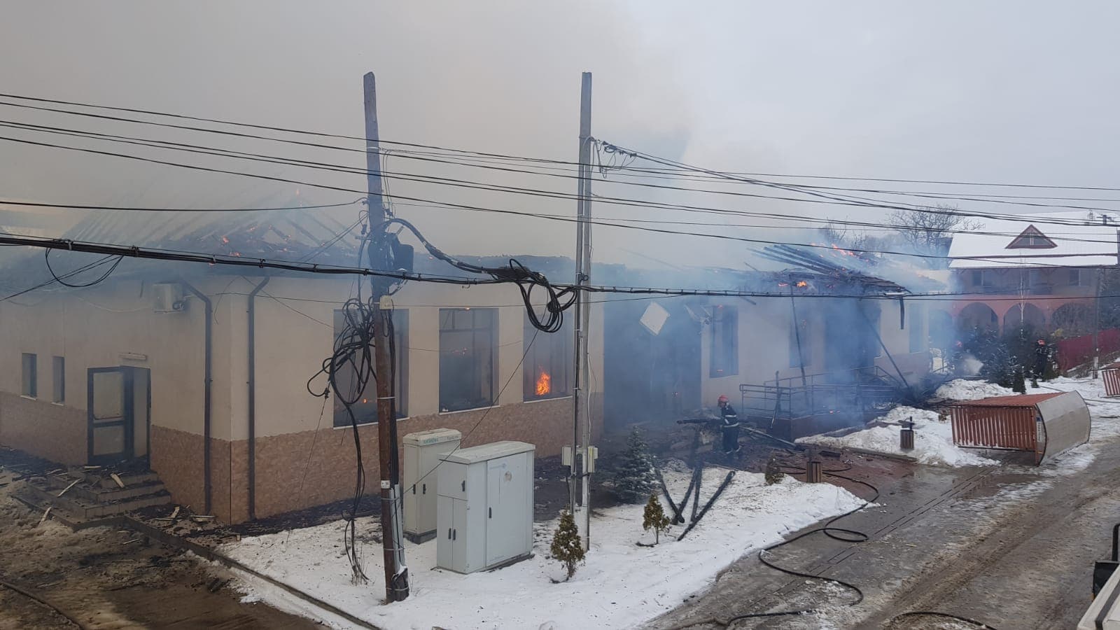 (AUDIO/FOTO/VIDEO) Vrancea: Incendiu devastator la Primăria Fitioneşti; tot personalul a fost evacuat
