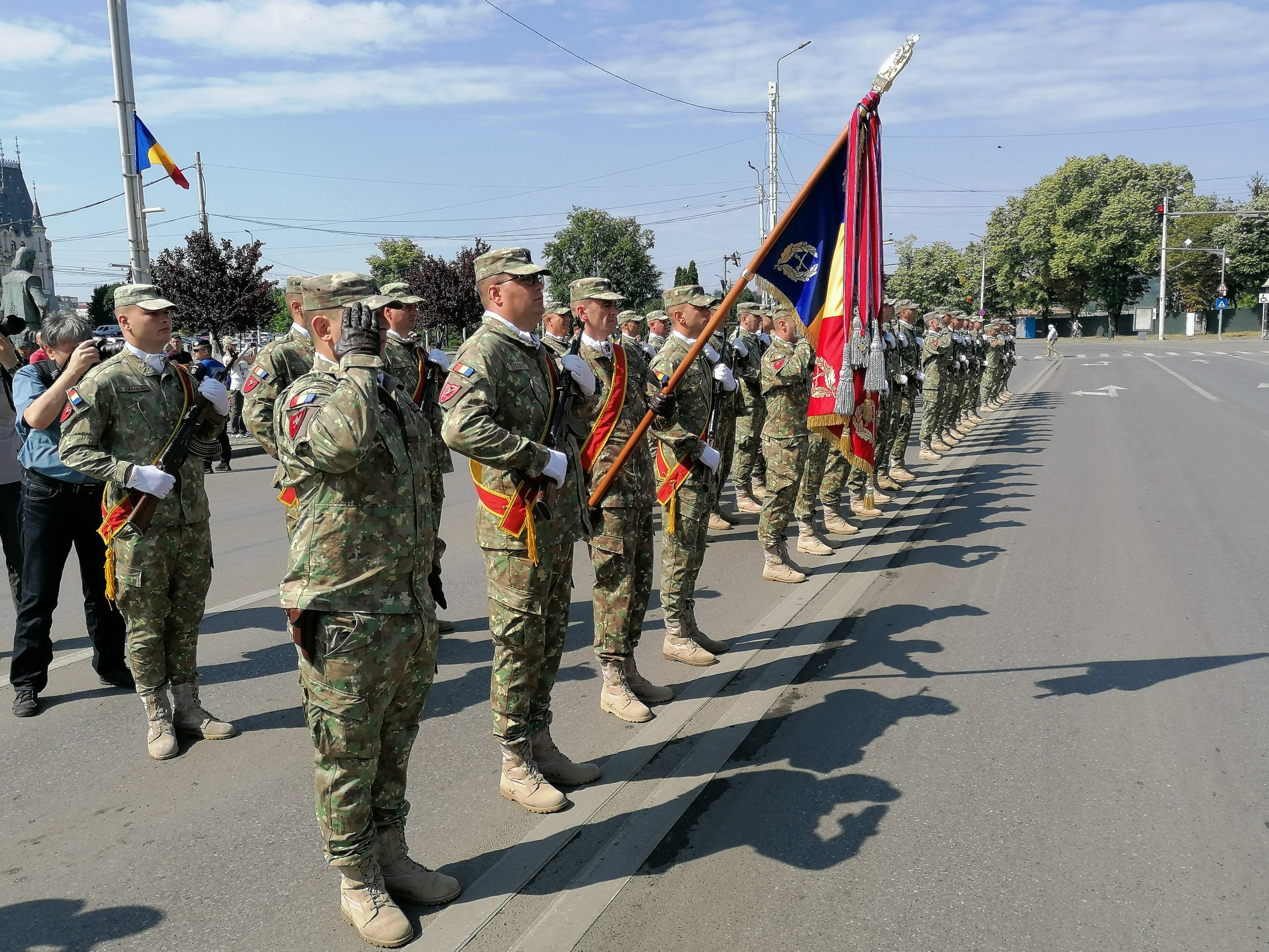 Înainte de a fi arborat, Drapelul Național a fost sfințit în cadrul unei slujbe la Catedrala Mitropolitană. Ceremonia de la Iași s-a încheiat cu intonarea Imnului Național și defilarea Garzii de Onoare, ne-a mai informat redactorul nostru, Constantin Mihai.