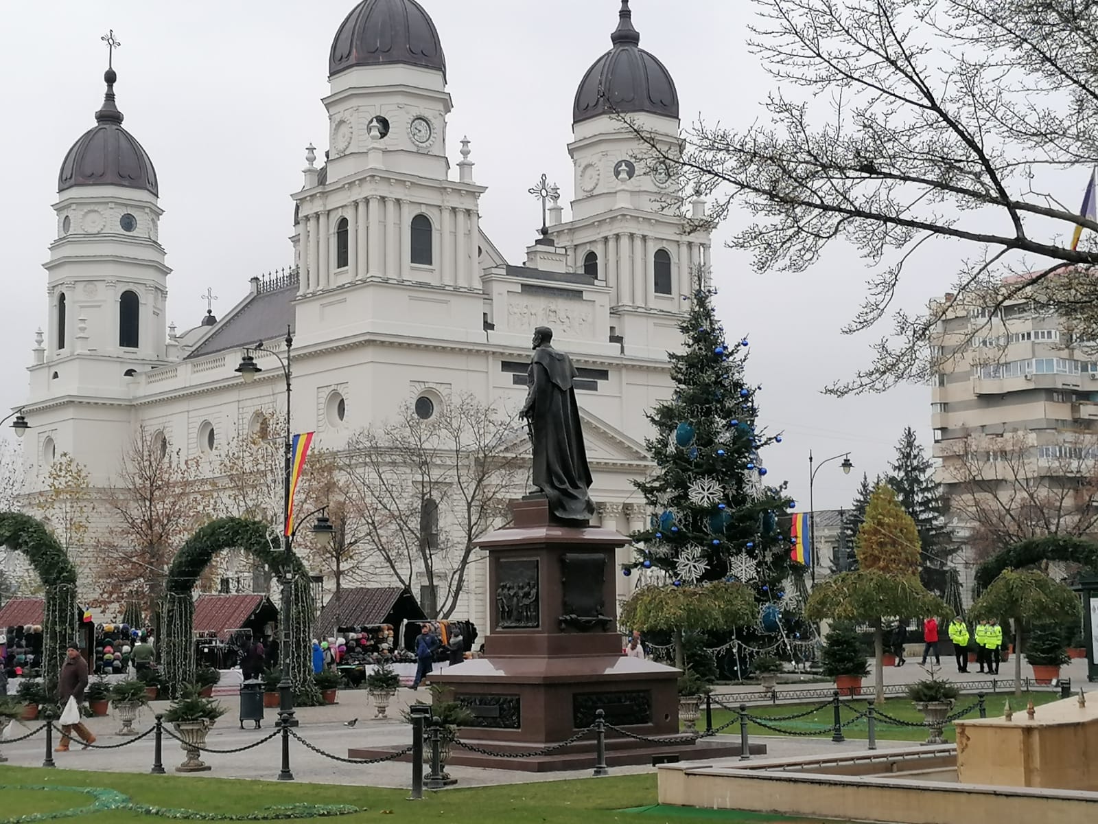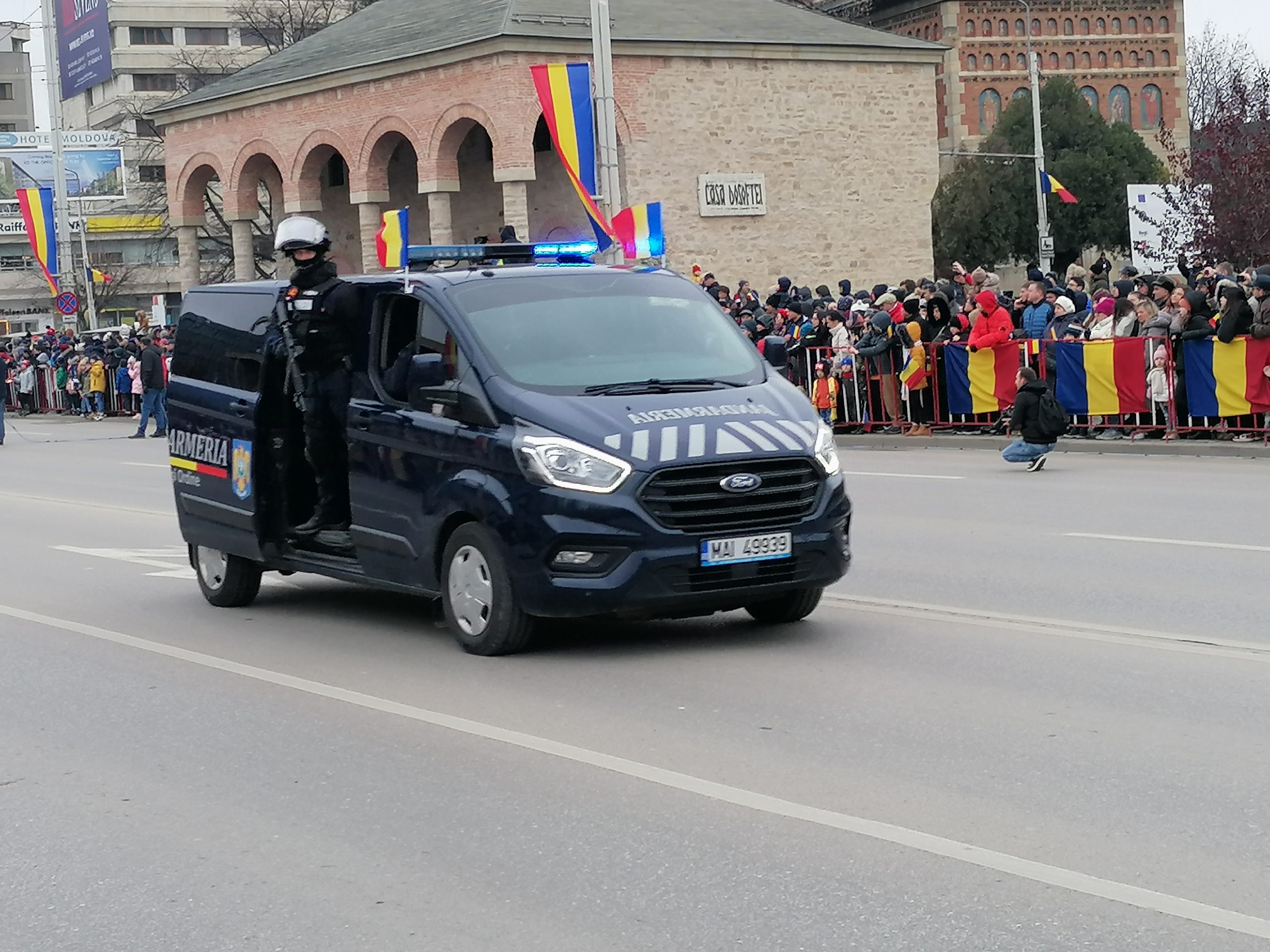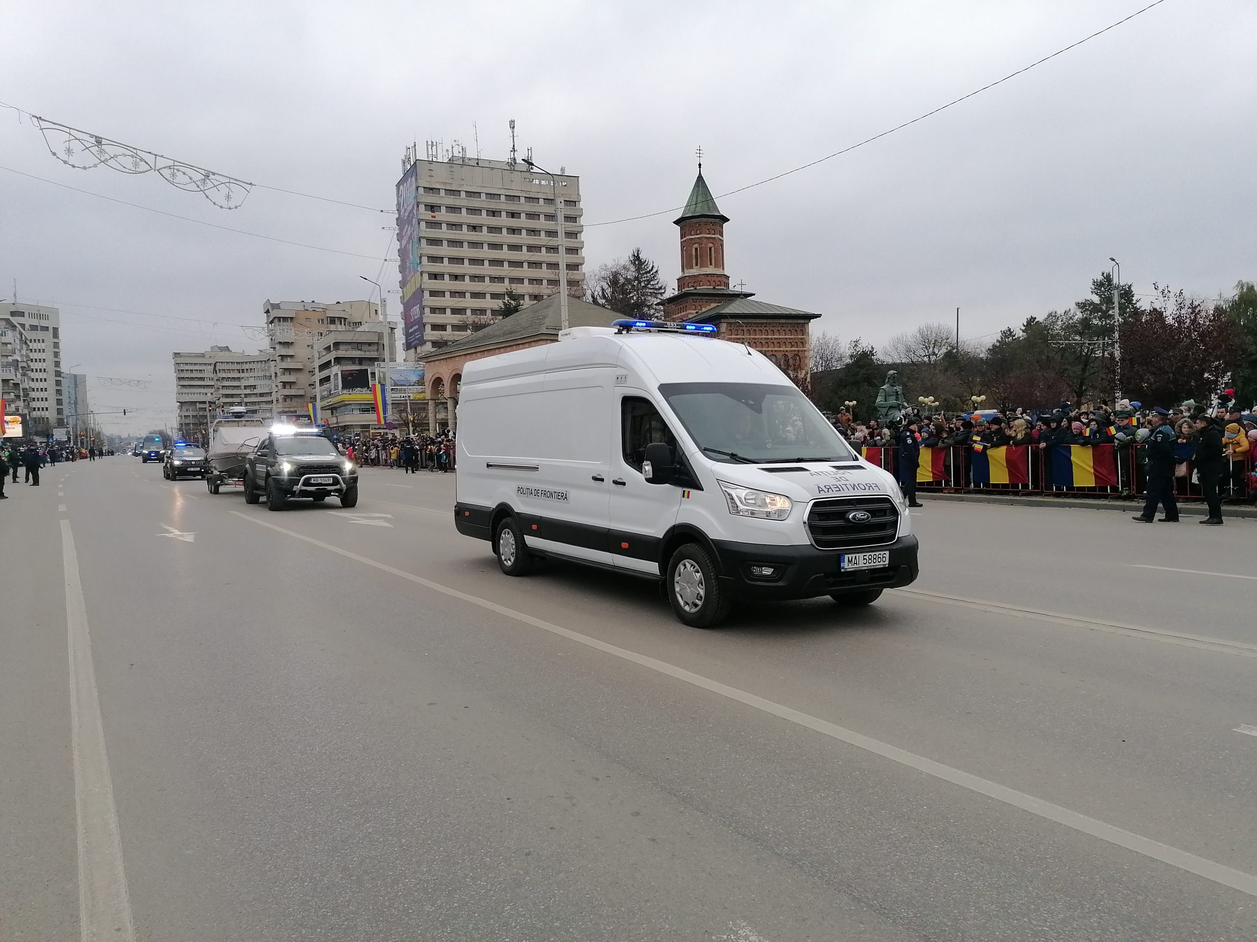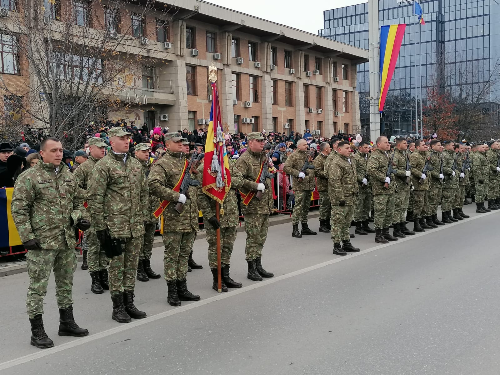 La ora 11:00, Piața Palatului Culturii este plină de oameni care urmăresc ceremonialul militar și religios.
