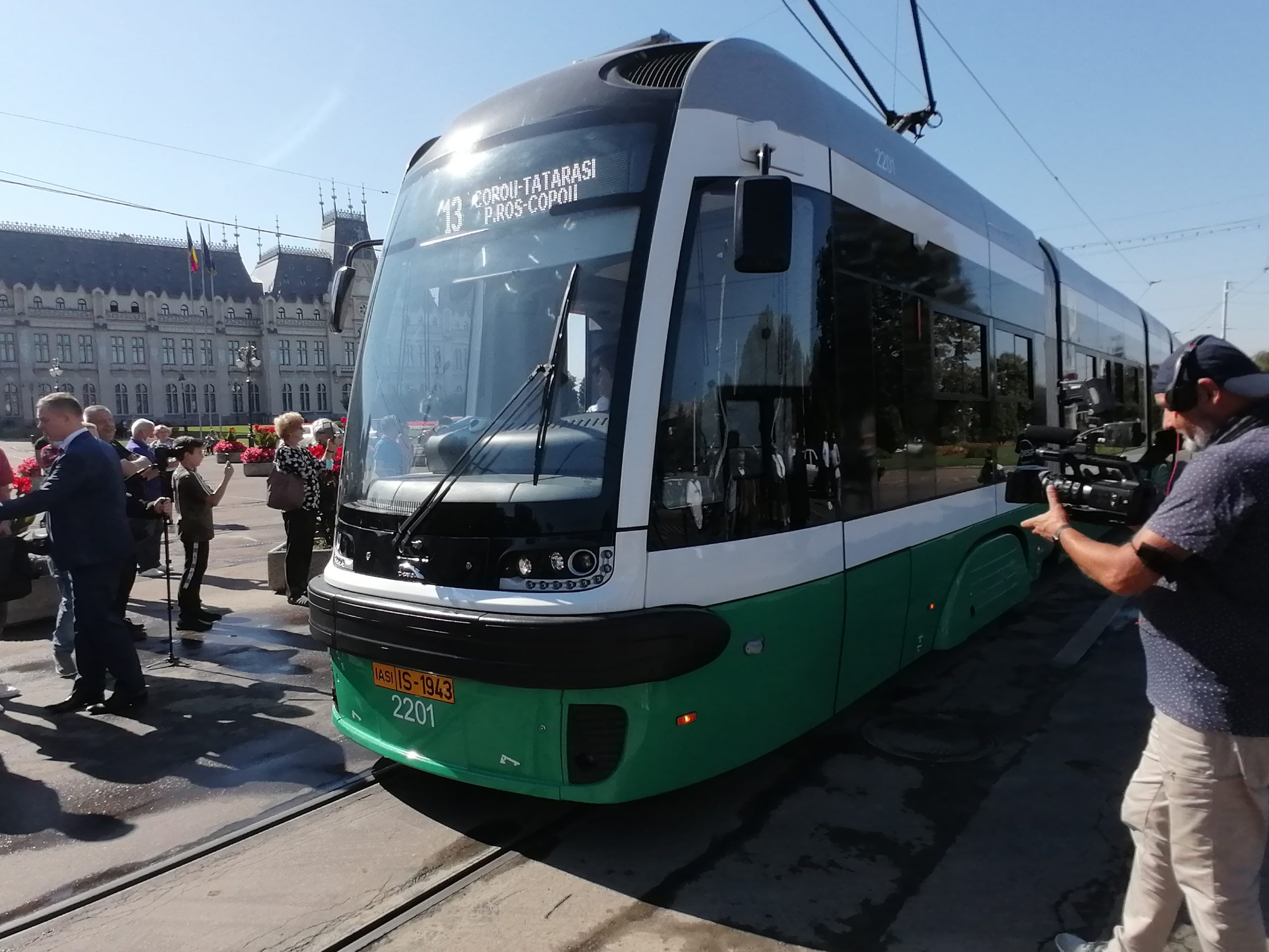 Mihai Chirica: Va avea cea mai mare capacitate de transport dintre tramvaiele din Iași, 230 de persoane, complet echipat cu sisteme de monitorizare atât pentru personalul navigant, să-l numesc de data aceasta, pentru vatmani, dar și pentru călători, cu podea complet joasă ceea ce a adus și la modificarea gabariturilor de la stațiile de la îmbarcare, cu posibilitatea de a număra călătorii, cu capacitatea de a monitoriza în online unde se află fiecare mijloc de transport, cu wi-fi gratuit, cu GPS permanent pe mijlocul de transport, cu ghidarea din dispecerat în functie de trafic si cu posibilităti multiple care vor veni pe parcursul timpului pe măsură ce se modernizează si sistemele de monitorizare din trafic. Deci, credem noi un produs eficient, adaptat solicitărilor de digitalizare ale Comisiei Europene.