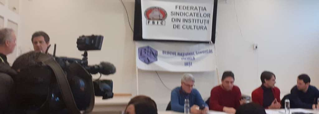Conferința de presă a fost susținută de Marius Ciulică, reprezentant al Federației Sindicatelor din Instituții de Cultură, Horațiu Raicu, din partea Blocului Național Sindical, dar și de membrii sindicatului ARTIS de la Opera Națională din Iași.