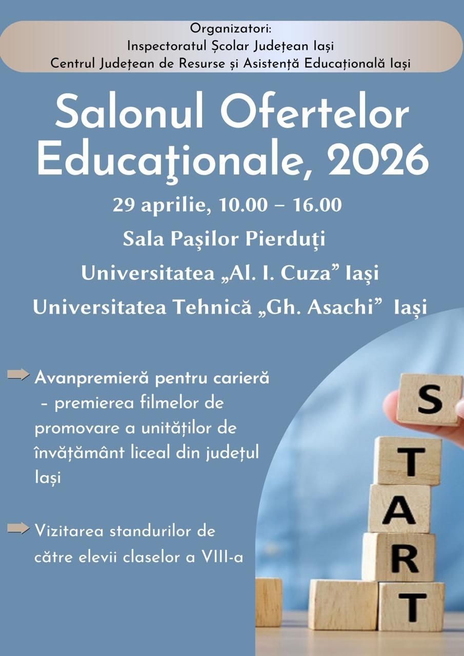 La Iași se desfășoară, miercuri, 29 aprilie 2026, Salonul Ofertelor Educaționale.