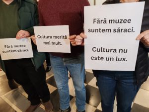Care  sunt solicitările acestora, aflăm de la liderul sindical, Celia Iacob: Solicităm ca cei din cultură să fie exceptați de la această tăiere cu 10% a anvelopei salariale, ceea ce înseamnă ori reduceri de personal — noi suntem 160 de angajați, ar însemna să plece 16 angajați, în condițiile în care avem deficit de personal — sau o reducere salarială de 10%, în condițiile în care salariile noastre sunt foarte mici; colegele de la supraveghere au salariul minim pe economie. În al doilea rând, ar fi vorba de neplata orelor prestate în weekend: sunt colegi care lucrează tot anul, în fiecare sâmbătă și duminică, și nu primesc niciun spor salarial. În al treilea rând, tragem un semnal de alarmă referitor la subfinanțarea culturii în general.