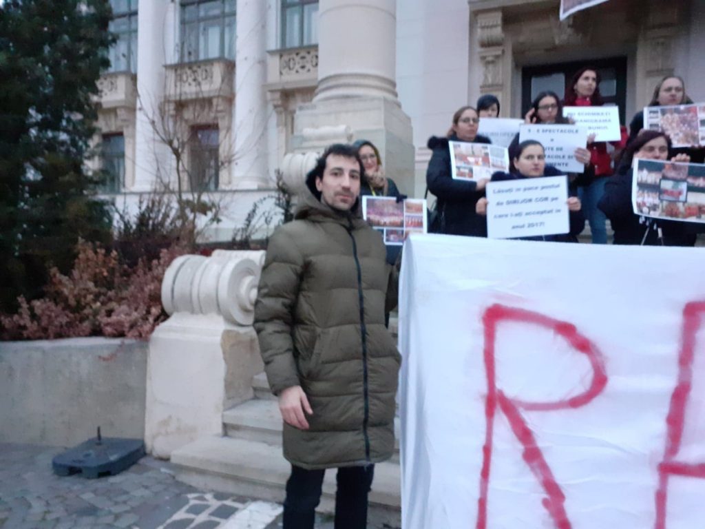 Alături de juniorii Operei s-a aflat şi balerinul Vlad Mărculescu, prim solist, care, a declarat că o susţine pe colega sa şi în acelaşi timp, protestează faţă de abuzurile la care sunt supuşi o parte dintre angajaţii Operei: „În primul rând pentru Raluca că a fost, aş putea zice dată afară ilegal prin reorganizare de posturi. Mă aflu pentru toţi colegii mei care au fost daţi afară până în acest moment pentru că vreau să se oprească subjugările şi în primul rând abuzurile faţă de toţi colegii mei. Toţi colegii mei care sunt din Operă cel puţin minim o parte din colegii mei sunt subjugaţi sau sunt terorizaţi prin diferite chemări în birou sau diferite promisiuni care de fapt promisiunea e dreptul meu să promovez, e dreptul meu să intru pe scena Operei şi e dreptul meu să pot să fiu artist. Sunt artişti cum e Cristina Simionescu şi nu ştiu toate numele acum, dar sunt foarte mulţi artişti de operă care nu cântă de minim 5 – 6 ani. Au fost artişti din balet care erau în certuri cu doamna manager şi nu dansau câte 3 – 4 ani şi erau ţinuţi, ştiţi cum este să ţii un artist de balet, să-l ţii aşa într-un colţ, să nu-i dai să danseze, îi terorizezi viaţa, îi omori tot spiritul, rămâne fără nimic în el”.