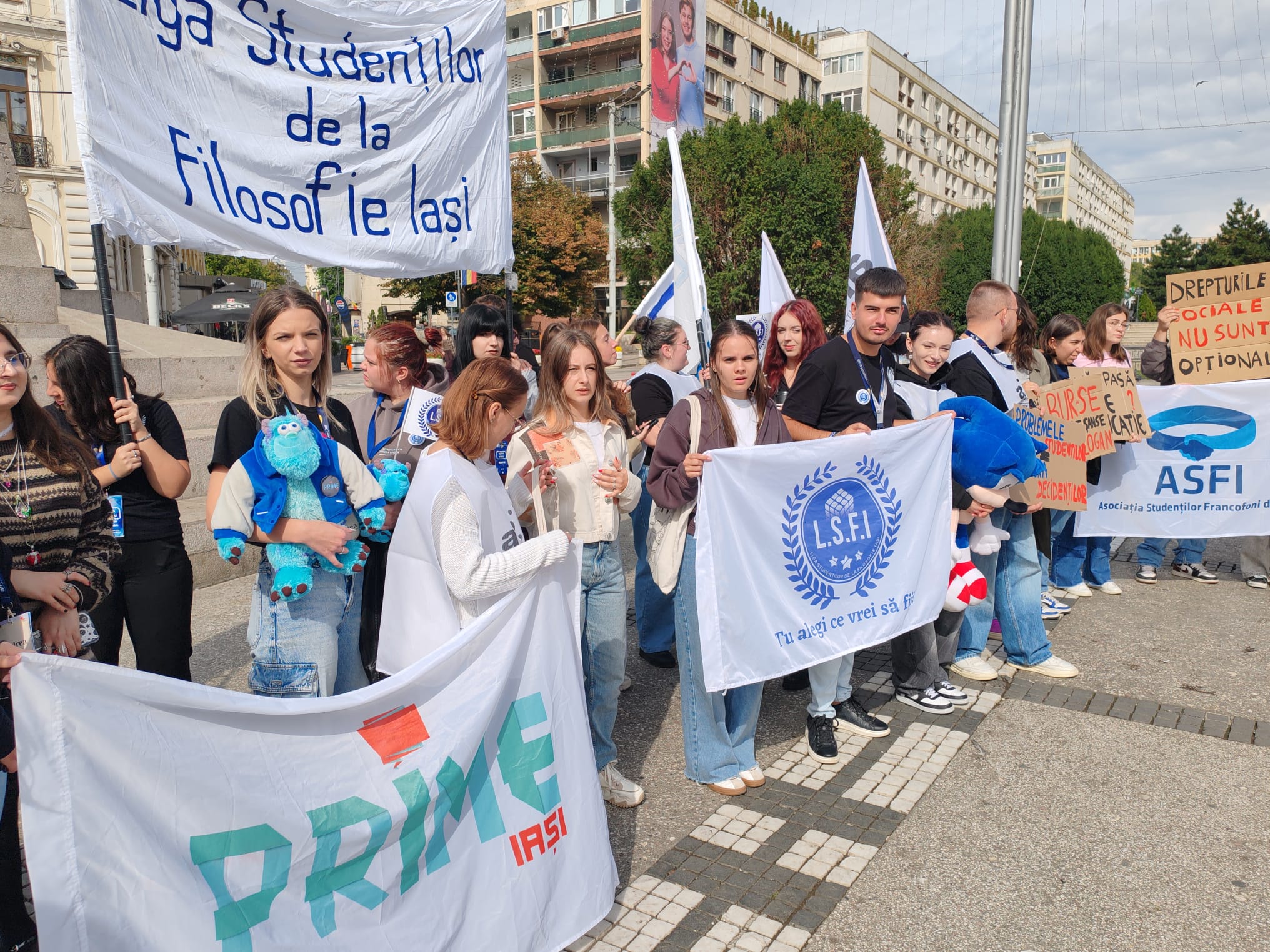 (AUDIO/VIDEO): Protest al studenților, la Iași, față de tăierea burselor