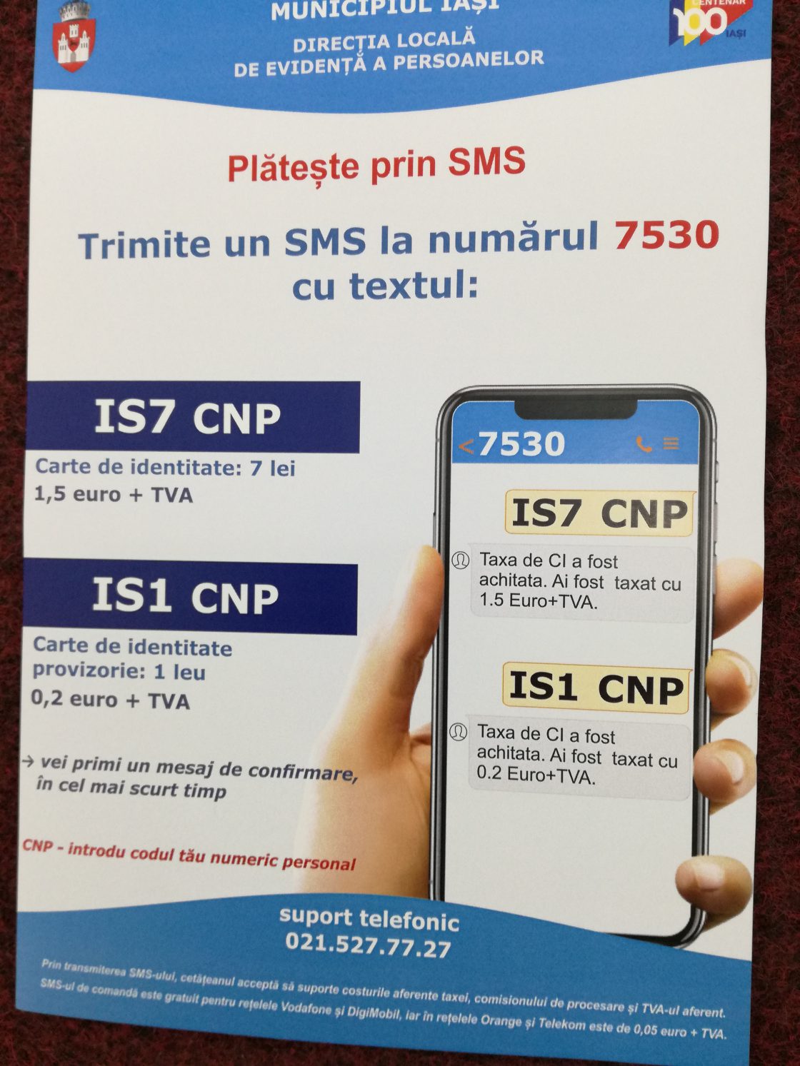 (AUDIO/FOTO) ATENŢIE ieşeni! S-a introdus plata prin SMS a Cărţii de Identitate