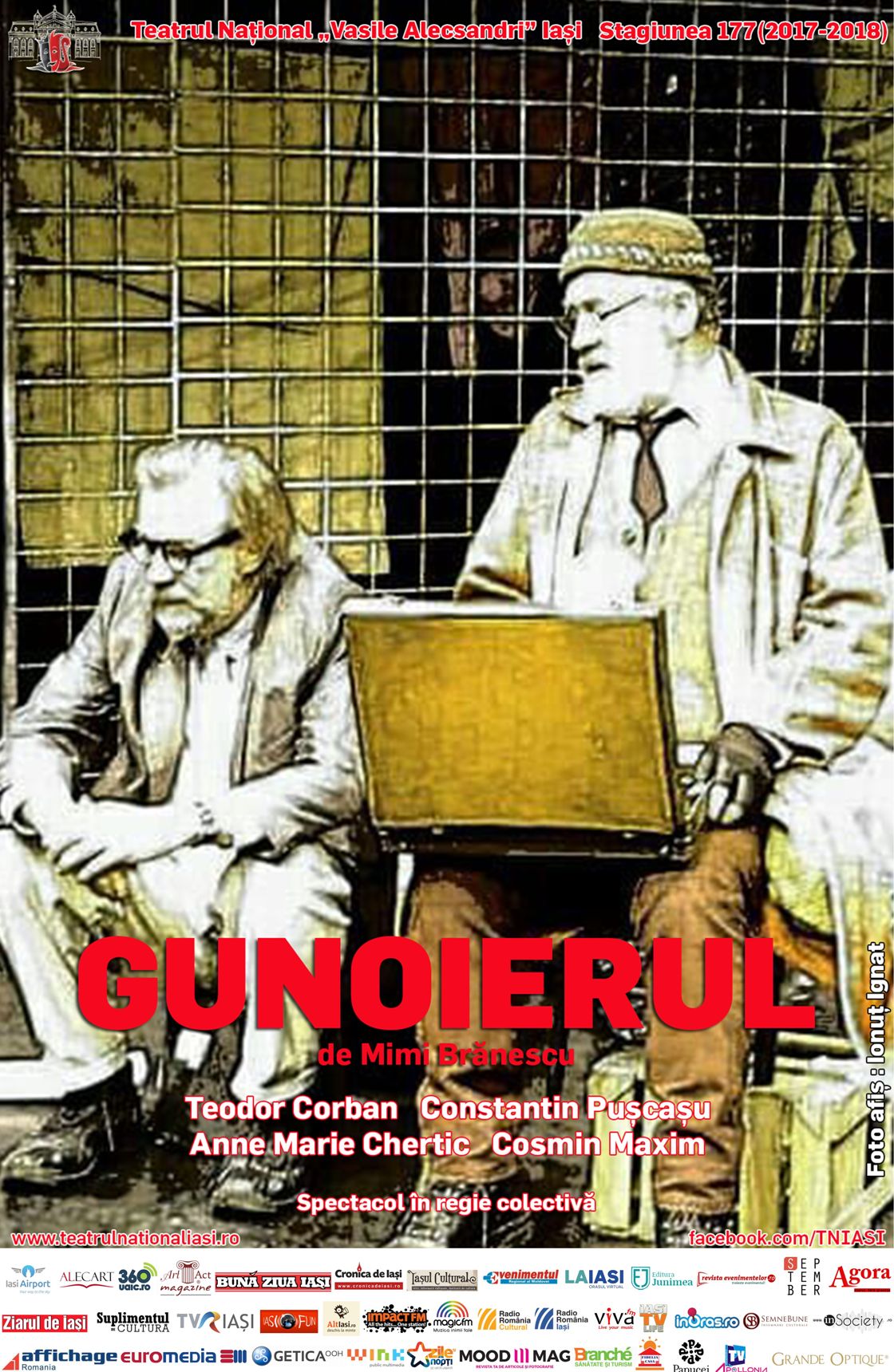 Sâmbătă şi duminică, respectiv 10 şi 11 martie 2018, la Teatrul Naţional din Iaşi va avea loc premiera piesei „Gunoierul”. Proiectul a fost iniţiat de actorii Teodor Corban şi Constantin Puşcaşu susţinut de colegii lor Anne Marie Chertic şi Cosmin Maxim.