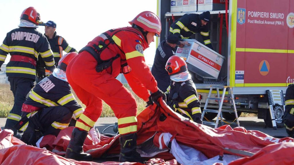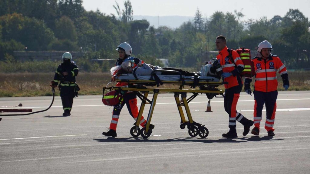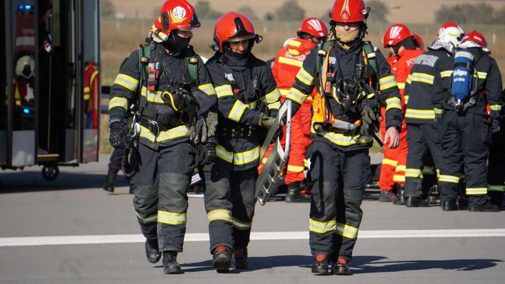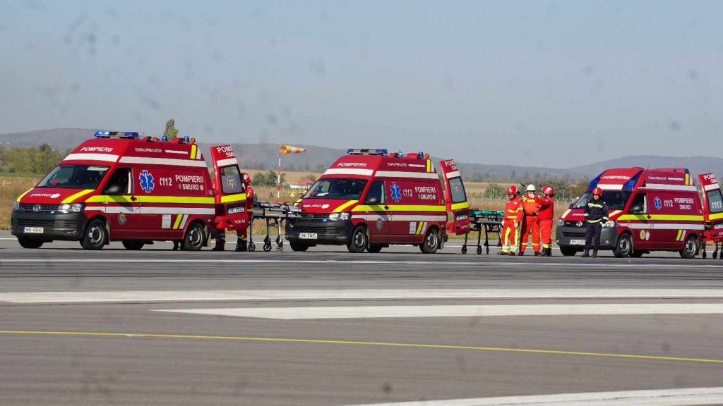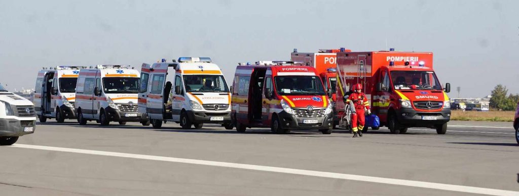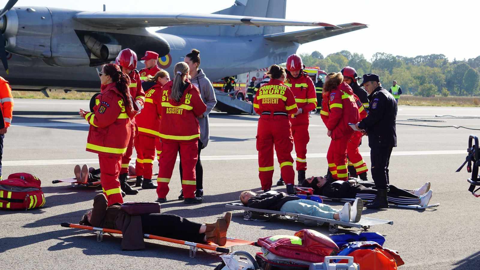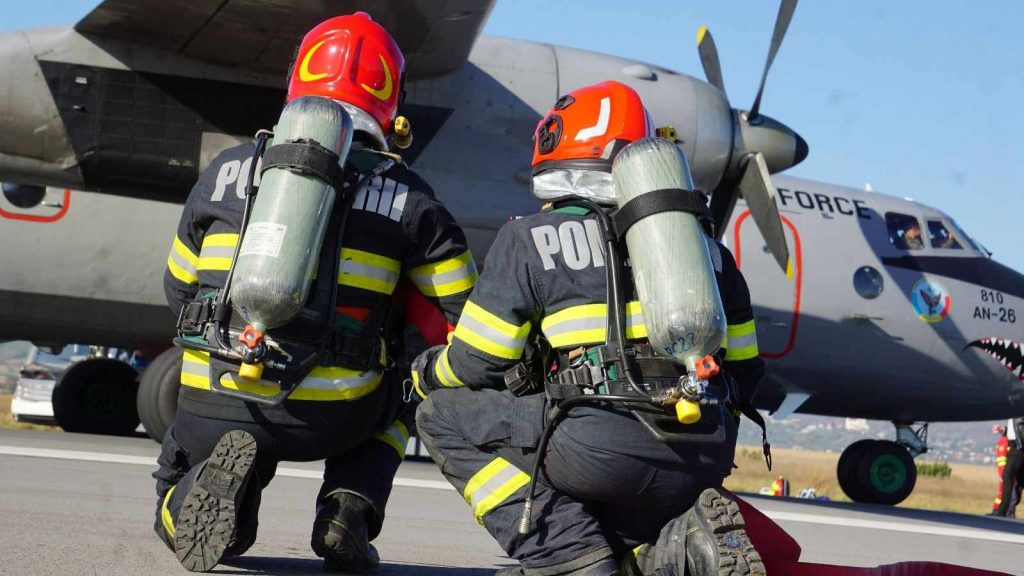 Bacău: Exerciţiu pe Aeroportul Internaţional ‘George Enescu’; a fost simulată aterizarea forţată a unui avion cu pasageri