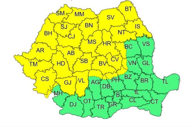 COD GALBEN de averse torenţiale, grindină şi vijelii
