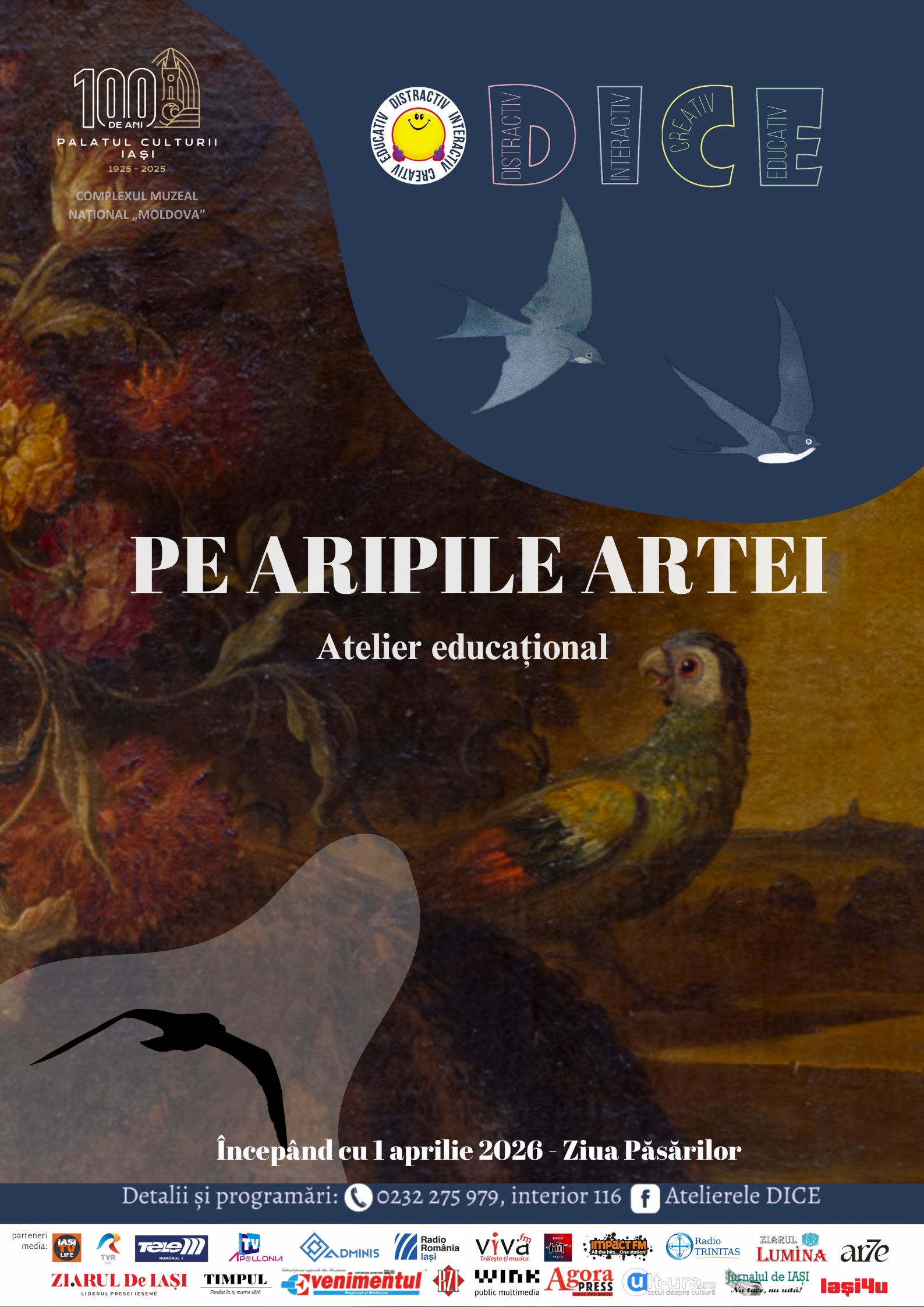 Complexul Muzeal Național „Moldova” Iași, prin Secția Mediere culturală, Proiecte, Marketing, cu sprijinul Muzeului de Artă și al Colegiului Național „Costache Negruzzi” Iași, sub egida DICE, organizează la Palatul Culturii din Iași, începând cu data de 1 aprilie 2026 – Ziua Internațională a Păsărilor – o nouă serie de ateliere educaționale: „Pe aripile artei”.