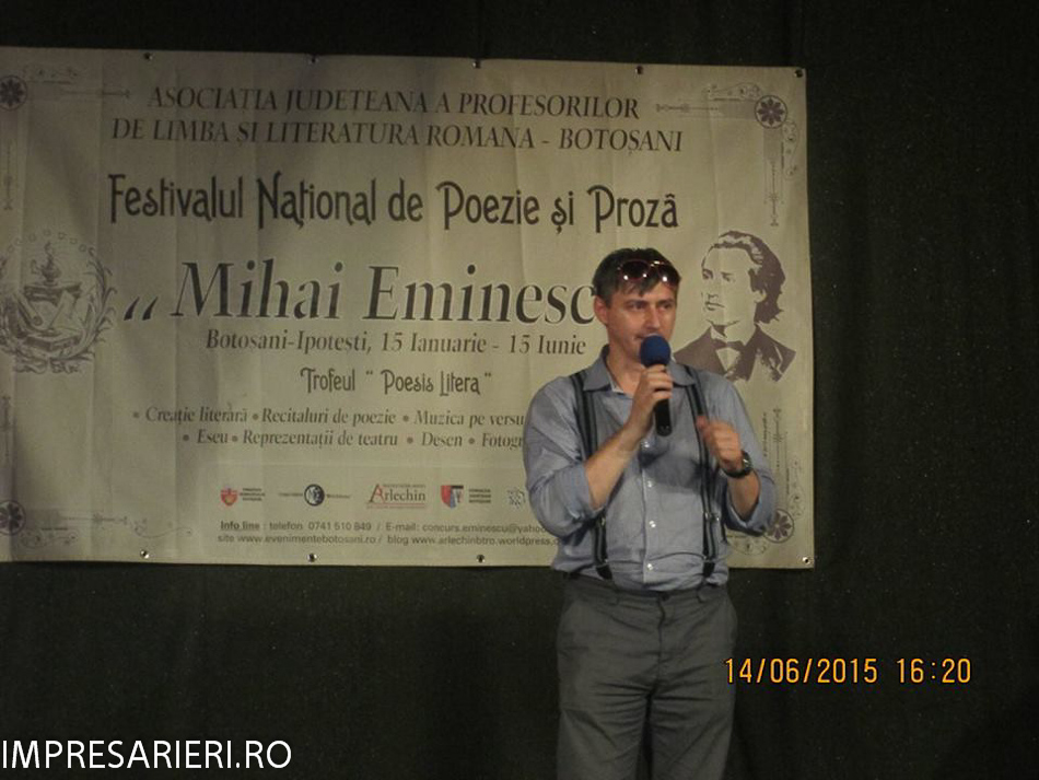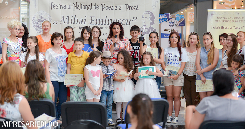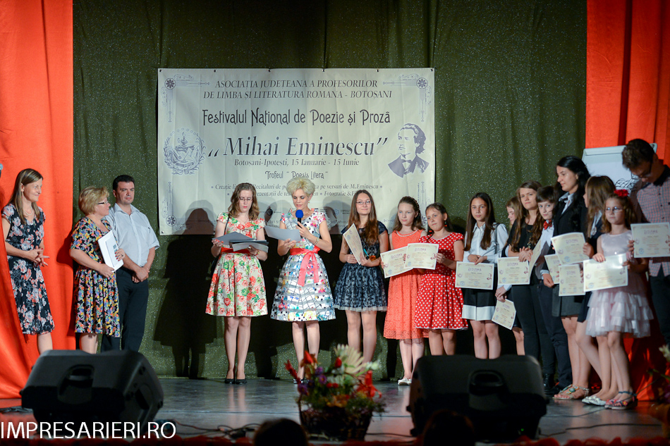 Ediţia a IV-a a Festivalului de Poezie şi Proză „Mihai Eminescu” s-a încheiat duminică, 14 iunie 2015, printr-o serie de activităţi. La ora 11, în zona de festivităţi a Botoşani Shoping Center, participanţi şi susţinători au venit să urmărească spectacolul omagial „ Dor de Eminescu” şi să asiste la Festivitatea de premiere unde a fost desemnat câştigătorul trofeului „Poesis Litera”.