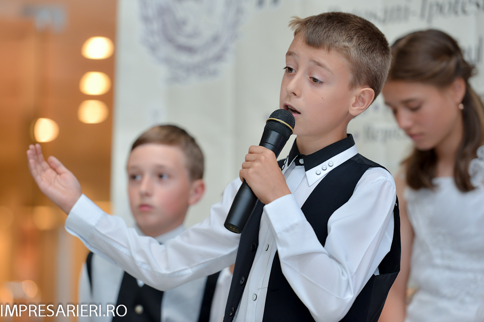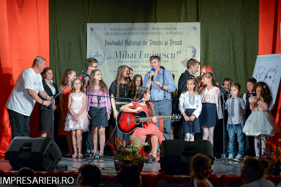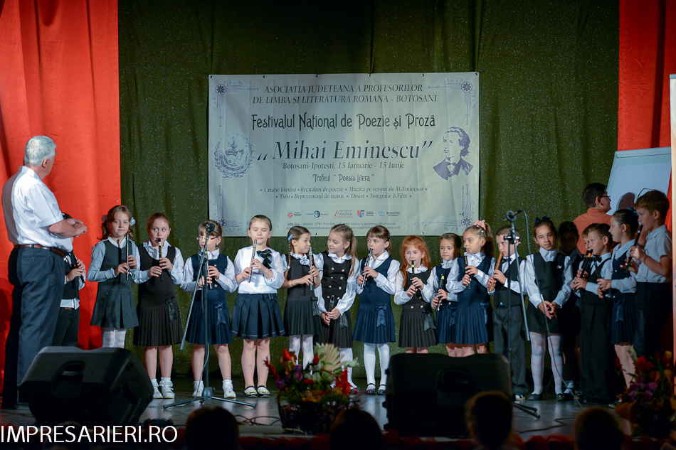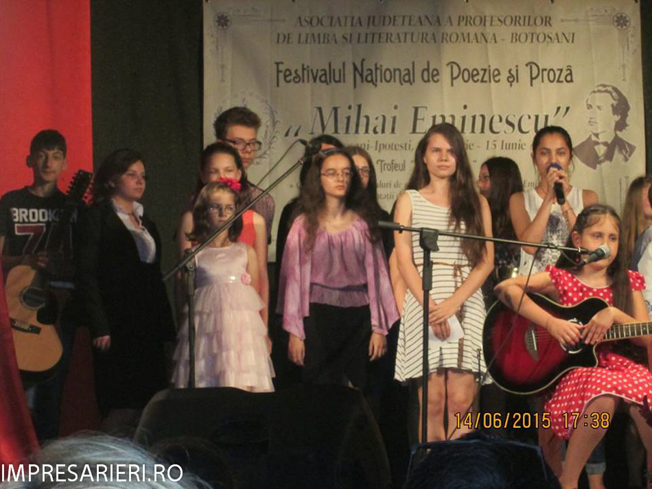 Doi copii, Ariana Negel, în vârstă de 6 ani, de la Grădiniţa 22 şi membră a Trupei de Teatru „ Arlechin” şi Jijie Emilian, de 8 ani, de la Şcoala Gimnazială nr. 1 Vorniceni membru a trupei de teatru „Unison”, au recitat integral, expresiv şi emoţionant poemul „ Luceafărul”.