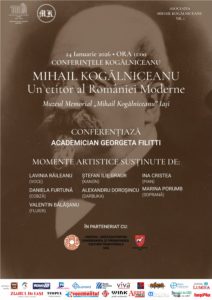 Complexul Muzeal Național „Moldova” Iași – Muzeul de Istorie a Moldovei – Muzeul Memorial „Mihail Kogălniceanu”, Asociația „Mihail Kogălniceanu Nr. 1” Iași și Centrul Județean pentru Conservarea și Promovarea Culturii Tradiționale Iași organizează conferința „Mihail Kogălniceanu – Un ctitor al României Moderne”, susținută de Academician Georgeta Filitti. Evenimentul va avea loc sâmbătă, 24 ianuarie 2026, începând cu orele 11.00, în Salonul Muzeului Memorial „Mihail Kogălniceanu” Iași.