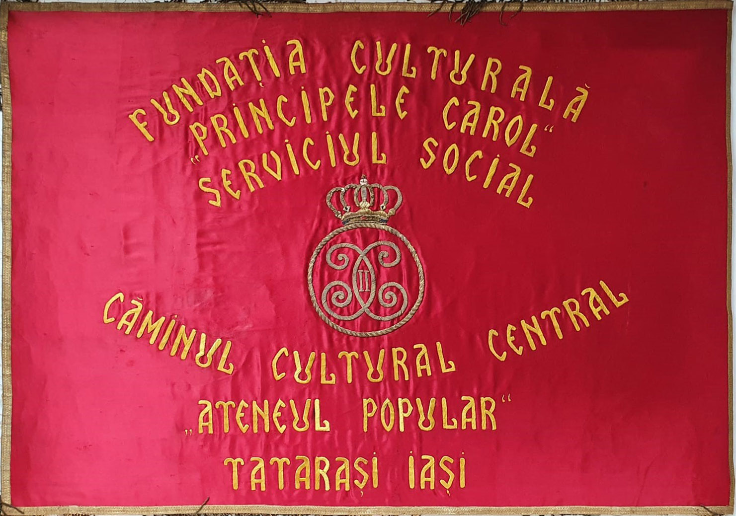 Steagul Ateneului Popular din Tătărași a constituit, încă de la începuturile instituției, un simbol de identitate al misiunii de promovare a culturii românești în noile provincii ale țării, rezultate din Marea Unire de la 1918. Drapelul însoțea grupurile de excursioniști în toate turneele de propagandă culturală din perioada interbelică. Steagul are o față tricoloră, cu stema Ateneului Popular din Tătărași, alături de inscripția „Unire prin cultură”, un motto ce a însoțit și a determinat activitățile instituției peste veacuri. Pe verso, este brodat textul Fundația Culturală „Principele Carol”, Serviciul Social, Căminul Cultural Central „Ateneul Popular” Tătărași Iași, precum și monograma Principelui Carol.