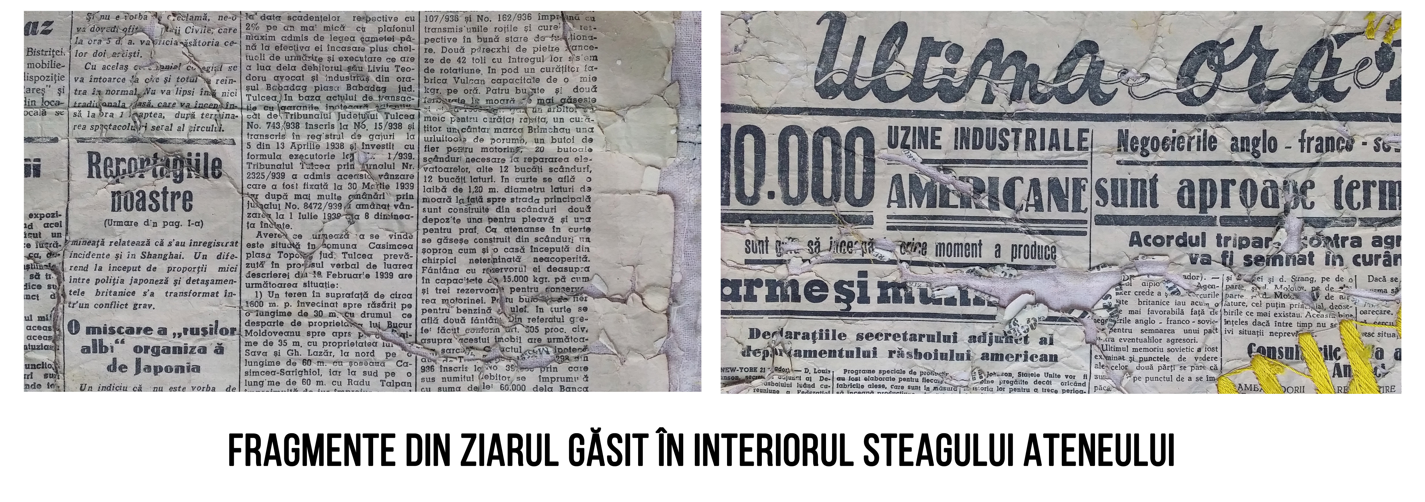 În etapele de recondiționare, experții restauratori au descoperit, în mijlocul steagului, un ziar din perioada interbelică, având rolul de întăritură, de unde se concluzionează că a mai fost supus unor procese de restaurare.