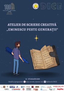 În perioada 14 – 18 ianuarie 2026, Atelierele DICE se alătură iniţiativelor de celebrare a Zilei Culturii Naţionale, propunând publicului o serie de Ateliere de scriere creativă, dedicate operei şi spiritului eminescian.