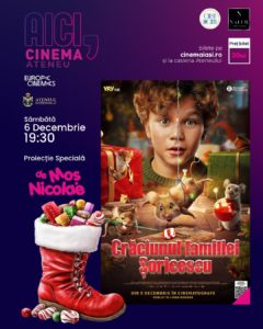 De la ora 18:00, în Sala Mare de Spectacole „Radu Beligan”, copiii sunt invitați să pătrundă în universul fermecat al teatrului de magie Spirilandia, un spectacol susținut de Teatro Blu. Accesul la reprezentație se va face gratuit în limita locurilor disponibile, oferind celor prezenți ocazia de a trăi o experiență unică, încărcată de farmec și surprize. Iar începând cu ora 19:30, Cinema Ateneu vă așteaptă la premiera proiecției de film Crăciunul familiei Șoricescu (bilete pe: https://cinemaiasi.ro/film/craciunul-familiei-soricescu/).