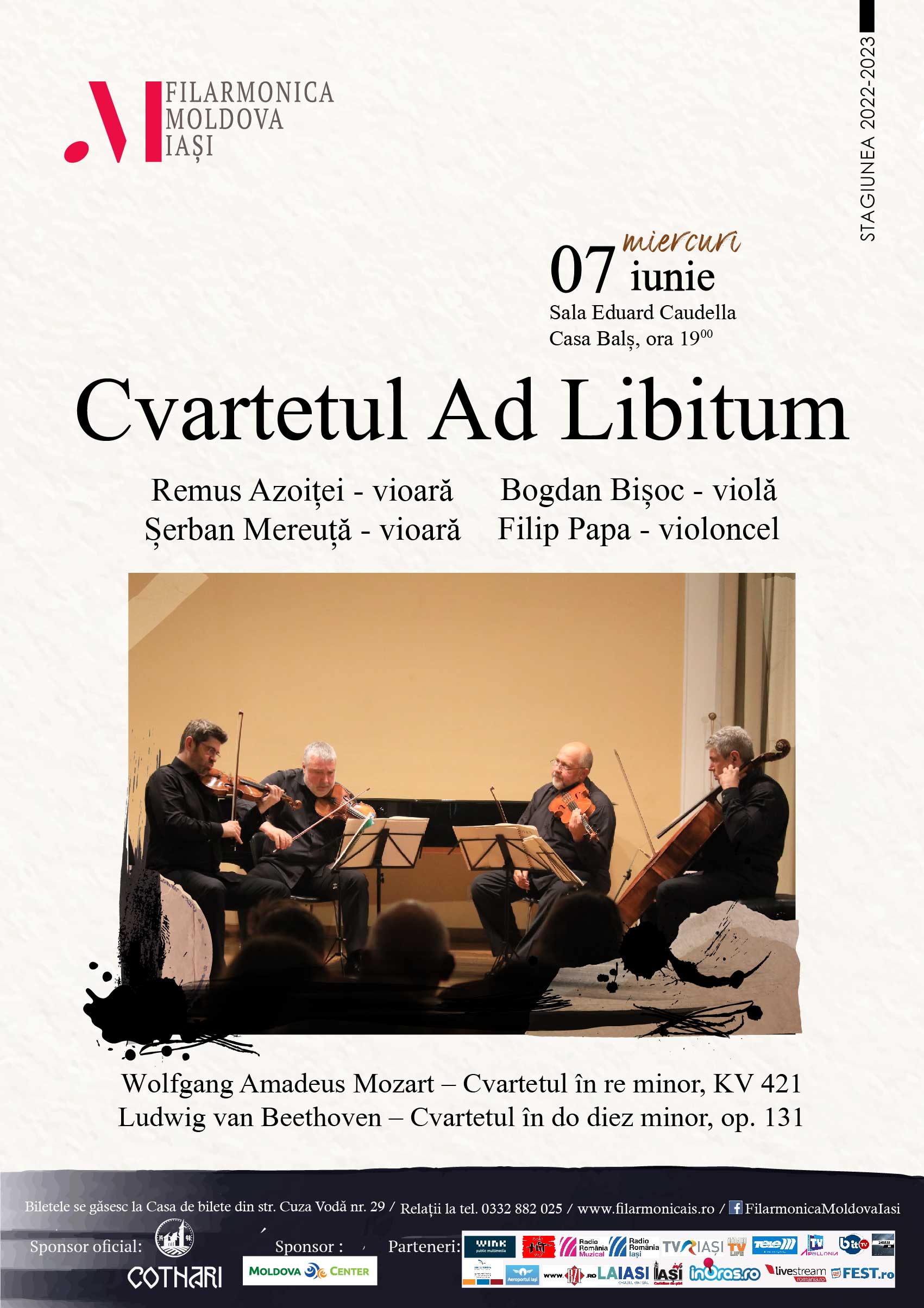MIERCURI, 17 decembrie 2025 – ora 19:00 – CONCERT CAMERAL Aula Bibliotecii Centrale Universitare „Mihai Eminescu” Iași Cvartetul...