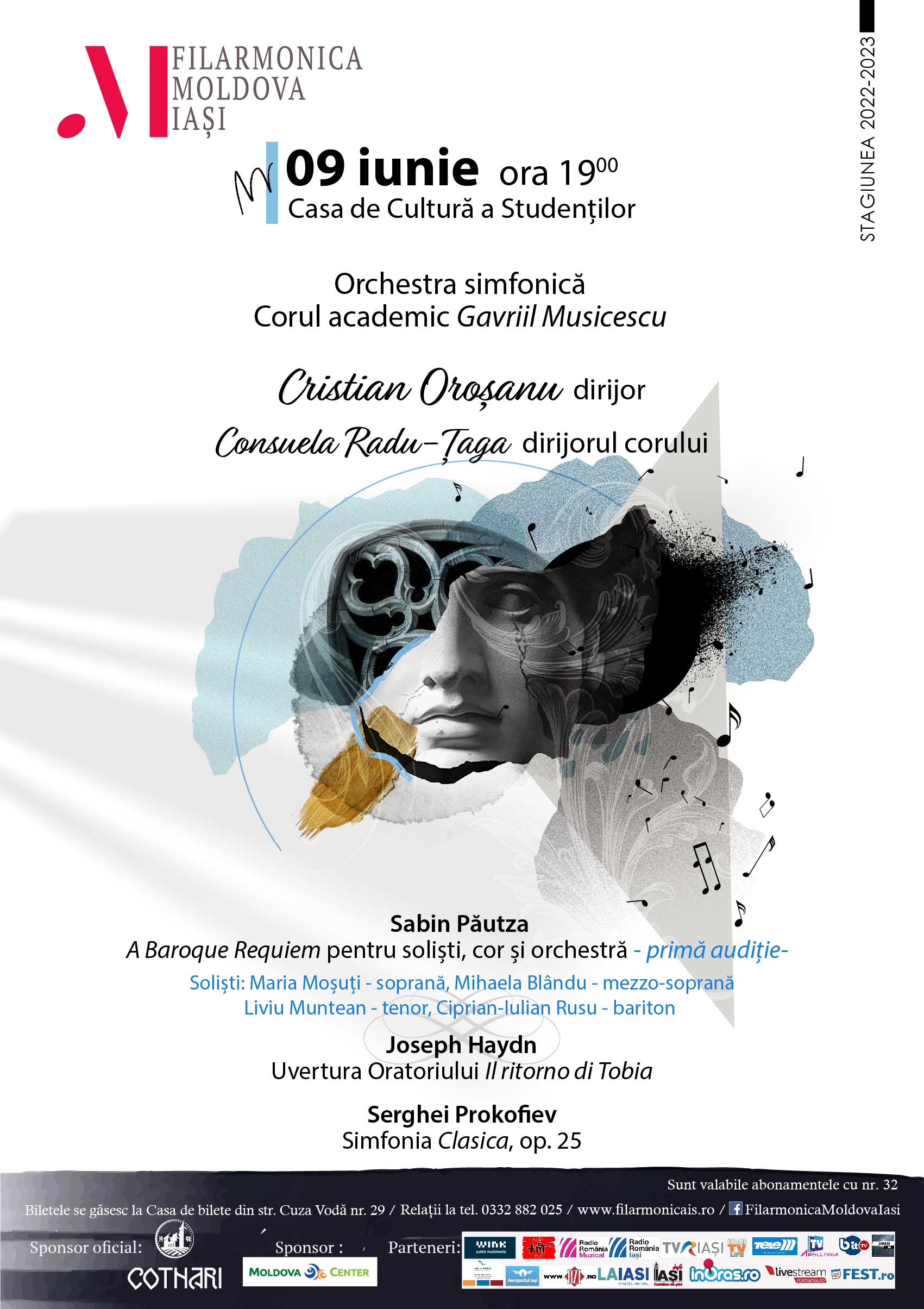 Orchestra simfonică și Corul academic „Gavriil Musicescu”, vă invită VINERI, 09 iunie 2023, începând cu ora 19:00, la Casa de Cultură a Studenților Iași să ascultați un concert deosebit.