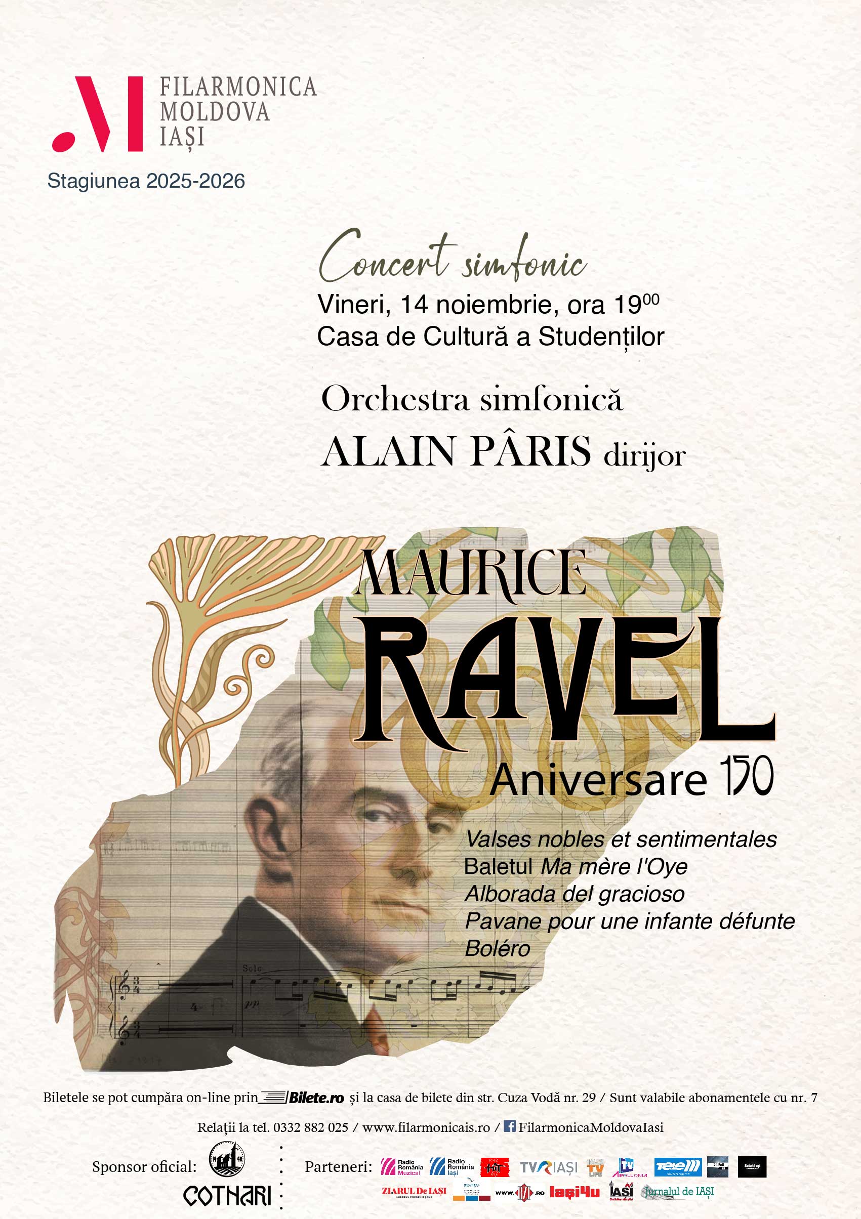 Anul 2025 aduce un moment de referință pentru muzica universală: împlinirea a 150 de ani de la nașterea compozitorului francez MAURICE RAVEL, un veritabil maestru al rafinamentului sonor.