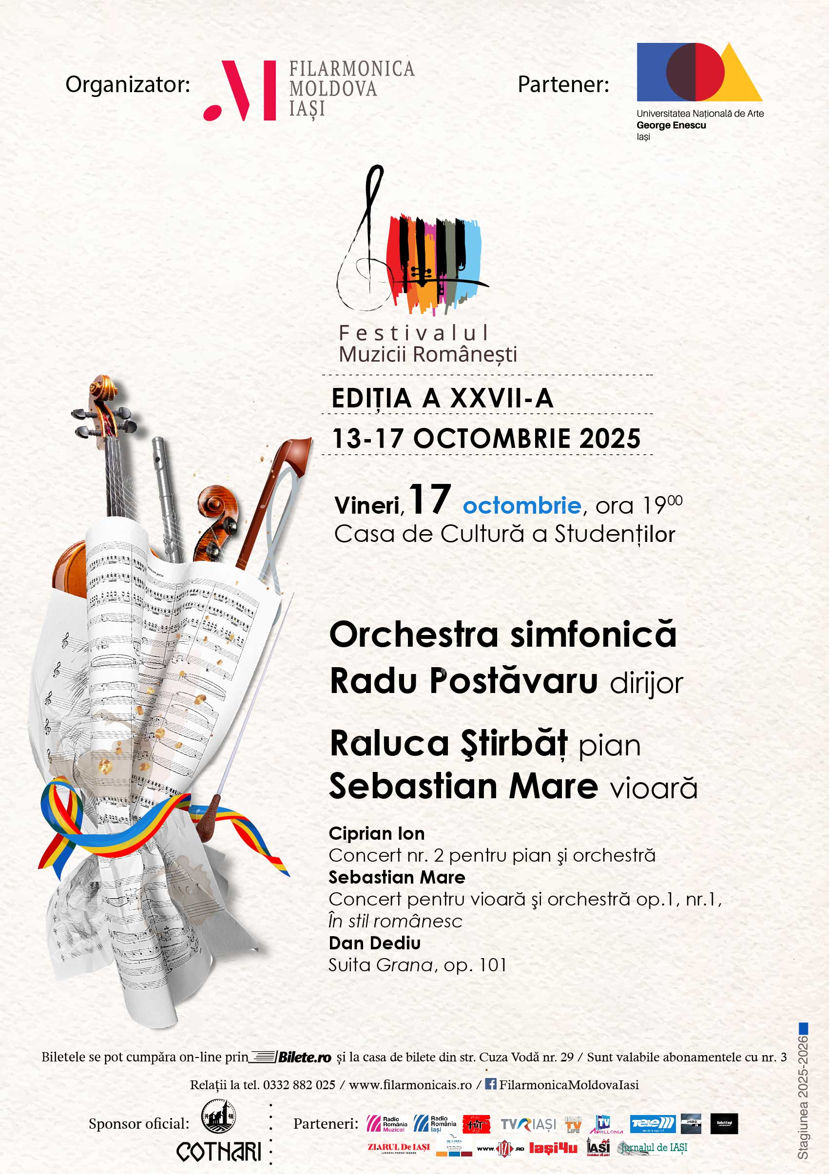 VINERI, 17 octombrie 2025, ora 19:00, CONCERT SIMFONIC – Casa de cultură a Studenților Iași