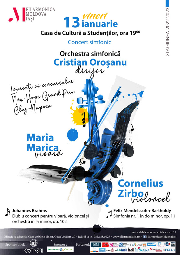 Vineri, 13 ianuarie 2023, începând cu ora 19:00, orchestra simfonică a Filarmonicii „Moldova” din Iași va susține la Casa de Cultură a Studenților, un concert simfonic sub bagheta dirijorului CRISTIAN OROȘANU.