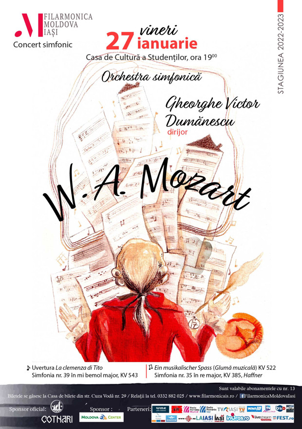 Orchestra simfonică a Filarmonicii „Moldova” din Iași va susține vineri, 27 ianuarie 2023, la Casa de Cultură a Studenților, începând cu ora 19:00 un concert simfonic sub bagheta dirijorului GHEORGHE VICTOR DUMĂNESCU.