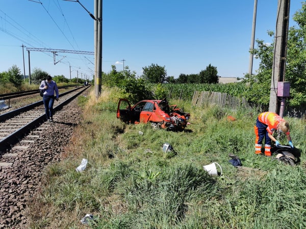 (FOTO/AUDIO) Bacău: Trei morţi şi doi răniţi după ce maşina în care se aflau a fost lovită de un tren. Circulaţia feroviară, blocată