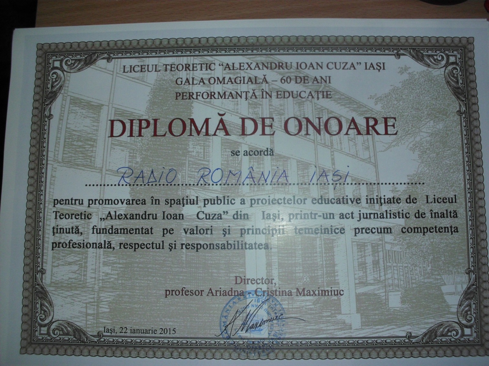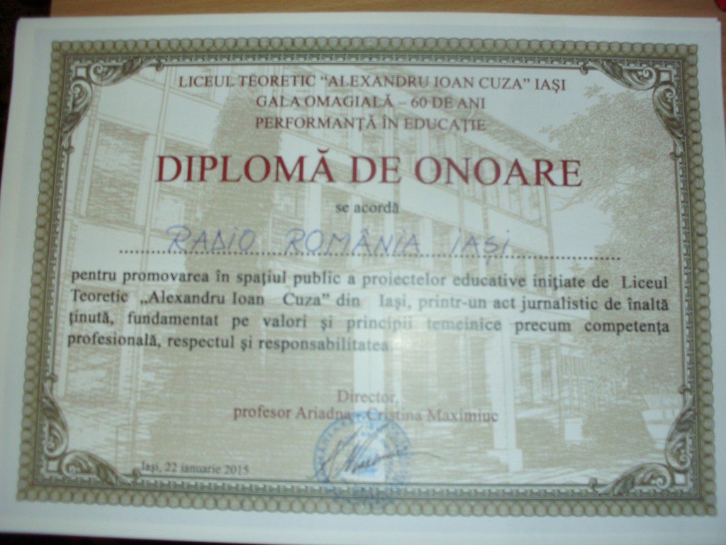 De asemenea au fost acordate Diplome de Onoare Managerului Radio România Iași, Claudia Iacob Crăcăleanu, redactorilor Ioana Soreanu și Mona Vîlceanu.