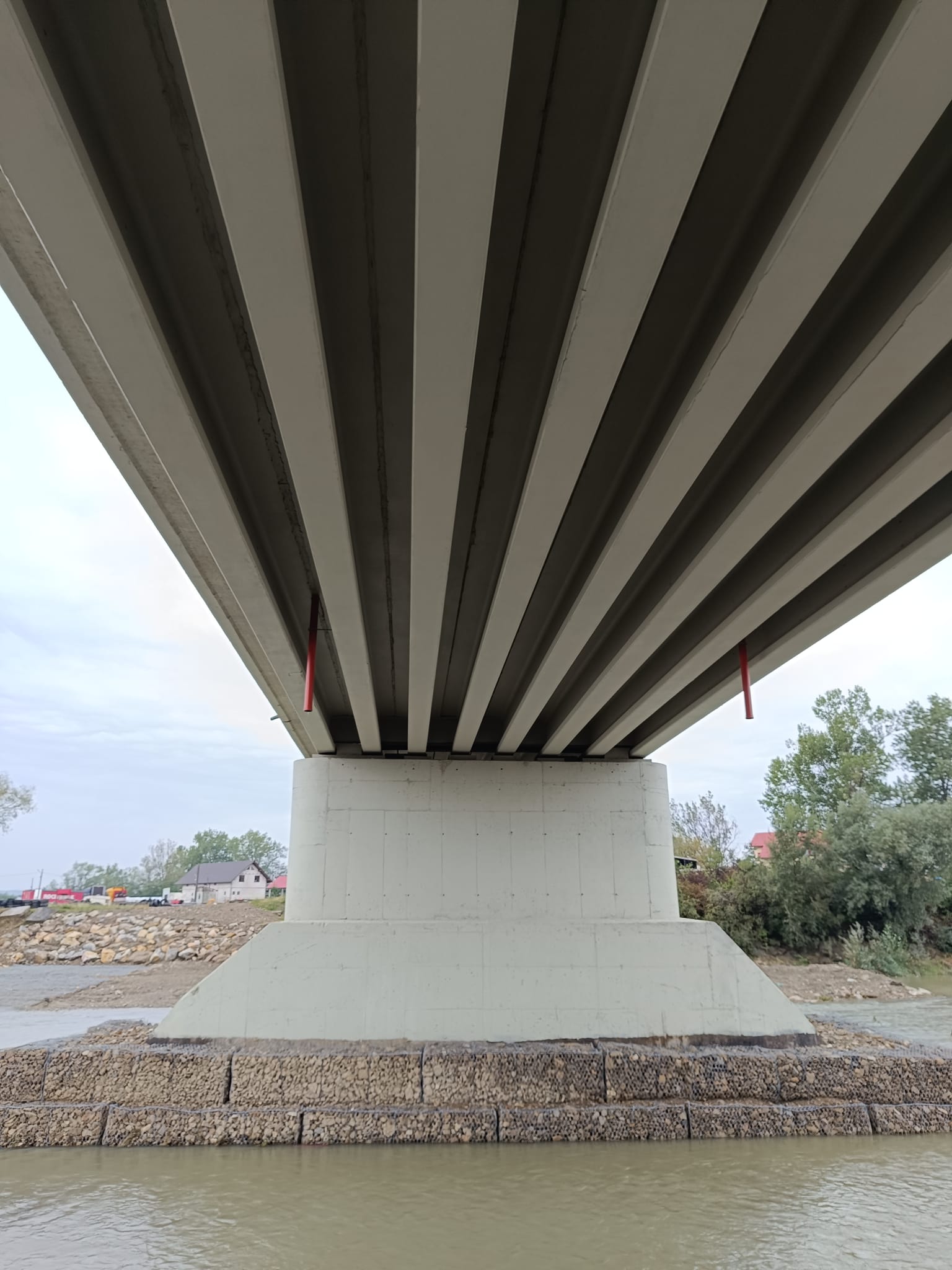 Ovidiu Laicu: Lucrările au fost unele consistente, atât la partea de suprastructură, cât și la cea de infrastructură. Au constat în consolidarea fundațiilor prin piloți forați. cămășuiri și protecție ale pilelor, dar și înlocuirea grinzilor, culminând cu aștenerea stratului de mixtură asfactică, montarea parapeților și a altor elemente de siguranță a circulației. Nu a fost un proiect ușor, chiar unul plin de provocări, am putea spune, având în vedere unele dificultăți tehnice, cât și condițiile de mediu. Trebuie spus că au fost montate nu mai puțin de 44 de grinzi noi, cu dimensiuni de aproximativ 27m, pentru care au fost mobilizate în șantier auto-macarale și ansambluri rutiere de mare tonaj, care au trebuit să se deplaseze și pe albia râului Suceava. O altă provocare pentru noi a fost asigurarea tranzitului pentru riverani, având în vedere că podul a fost închis total circulației. Astfel, traficul greu a fost deviat pe rute ocolitoare.