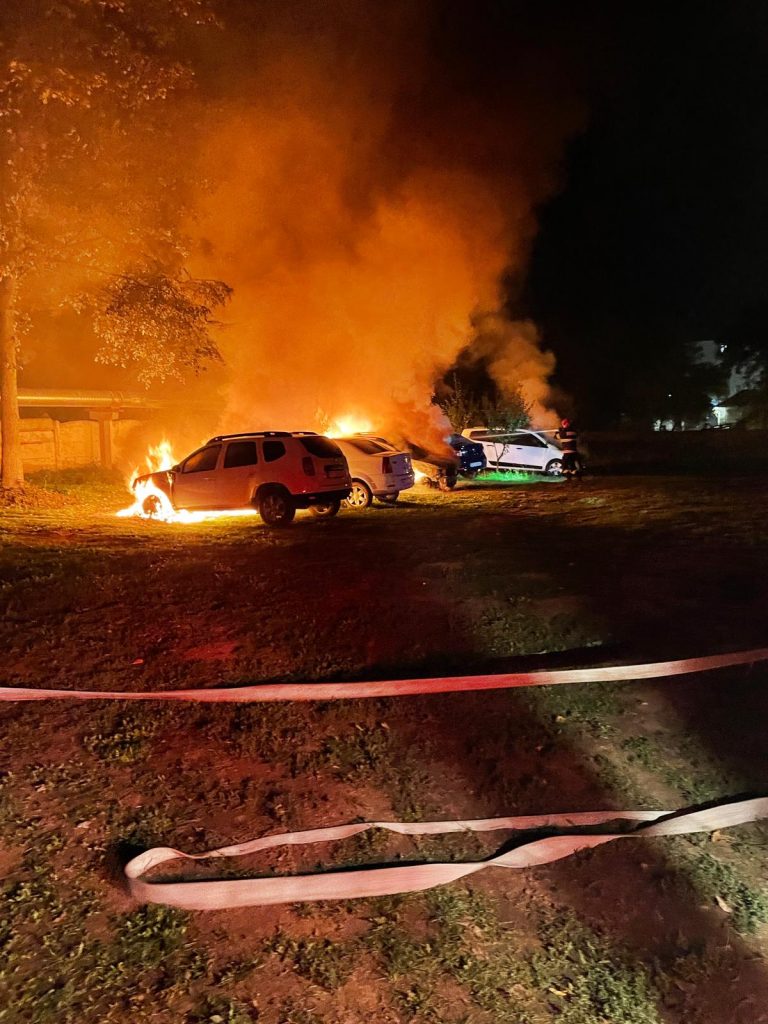 (FOTO) Bacău: Dosar penal pentru distrugere deschis în cazul incendiului care a afectat opt autoturisme şi un microbuz