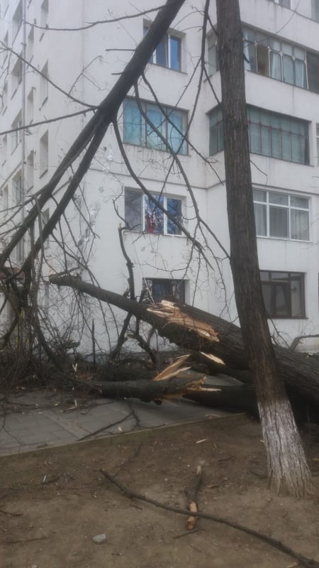 De asemenea, un copac rupt a blocat drumul judeţean care leagă municipiul Botoşani de comuna Roma, iar un altul a căzut în Parcul Sucevei.