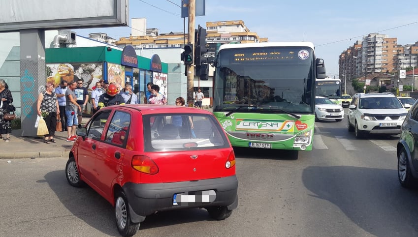 O coliziune s-a produs vineri, în municipiul Bacău, între un autoturism şi un autobuz în care se aflau 20 de persoane.