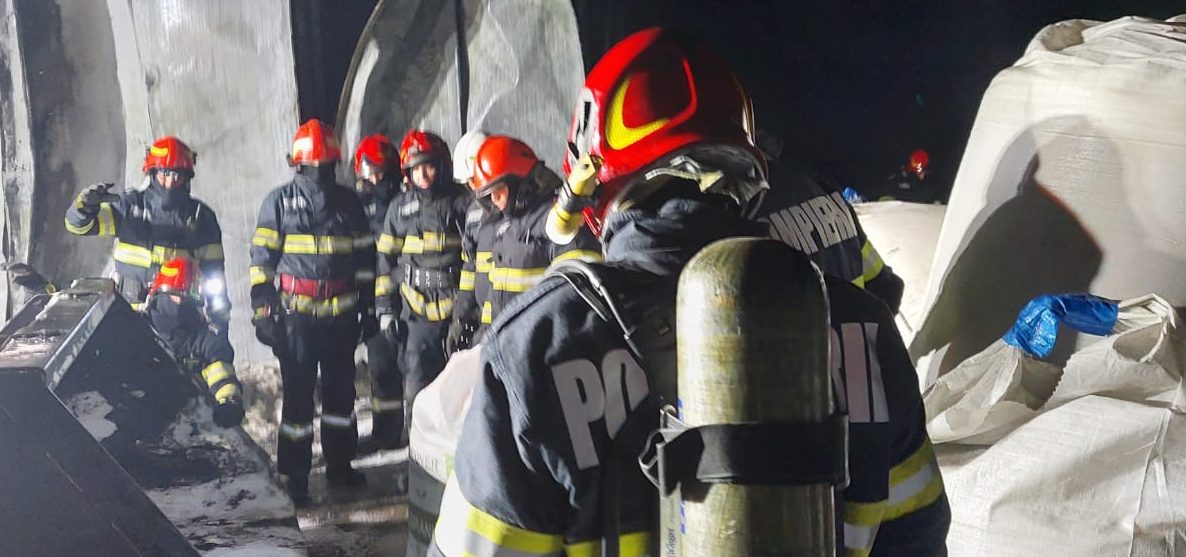 (FOTO) Galaţi: Pericol de explozie la o hală agricolă din localitatea Vârlezi