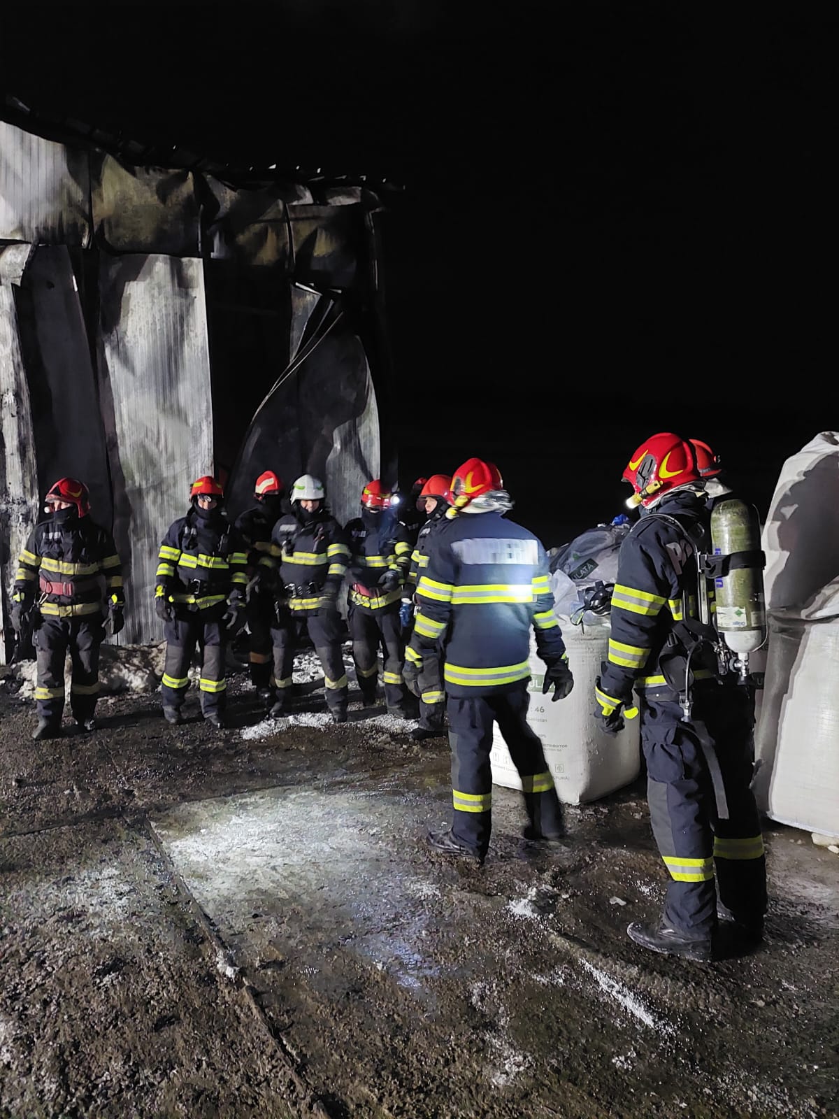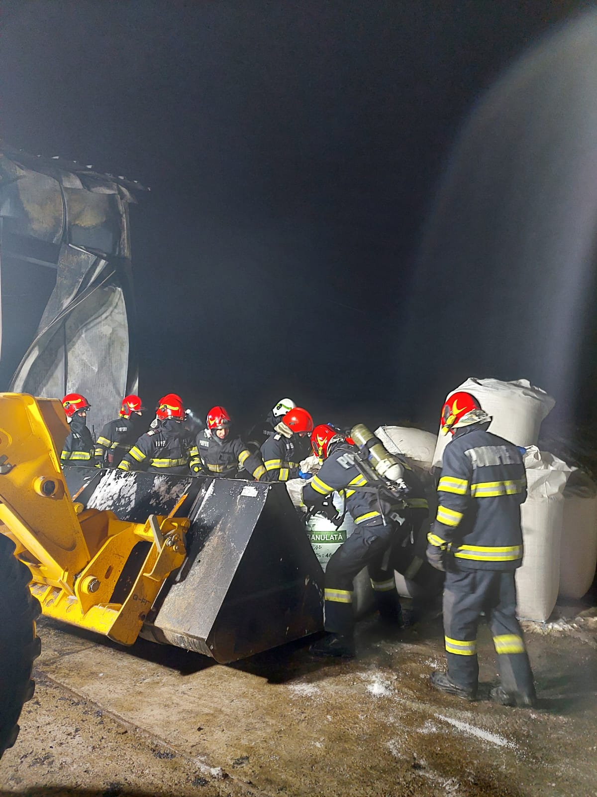 De asemenea au fost evacuaţi către o zonă sigură 22 de saci a câte 500 kg fiecare cu azotat de amoniu.