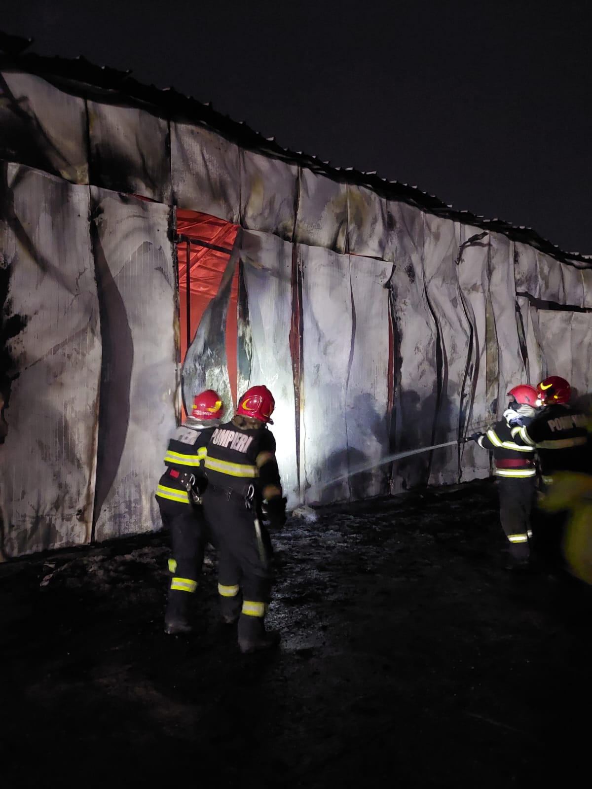 ‘A existat pericol de explozie, dar au evacuat azotatul cu ajutorul unui utilaj, concomitent cu acţiunea de stingere. Cauza probabilă a incendiului a fost un coş de fum neizolat corespunzător faţă de materialele combustibile din structura construcţiei’, a declarat purtătorul de cuvânt al ISU Galaţi, Eugen Chiriţă. AGERPRES/FOTO ISU VS