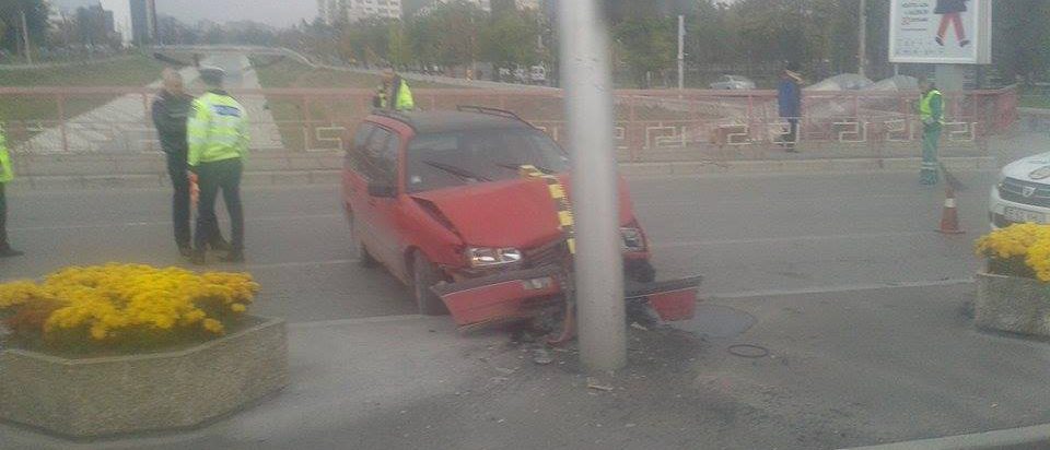 Un autoturism a intrat cu viteză într-un stâlp de pe marginea podului peste Bahlui.