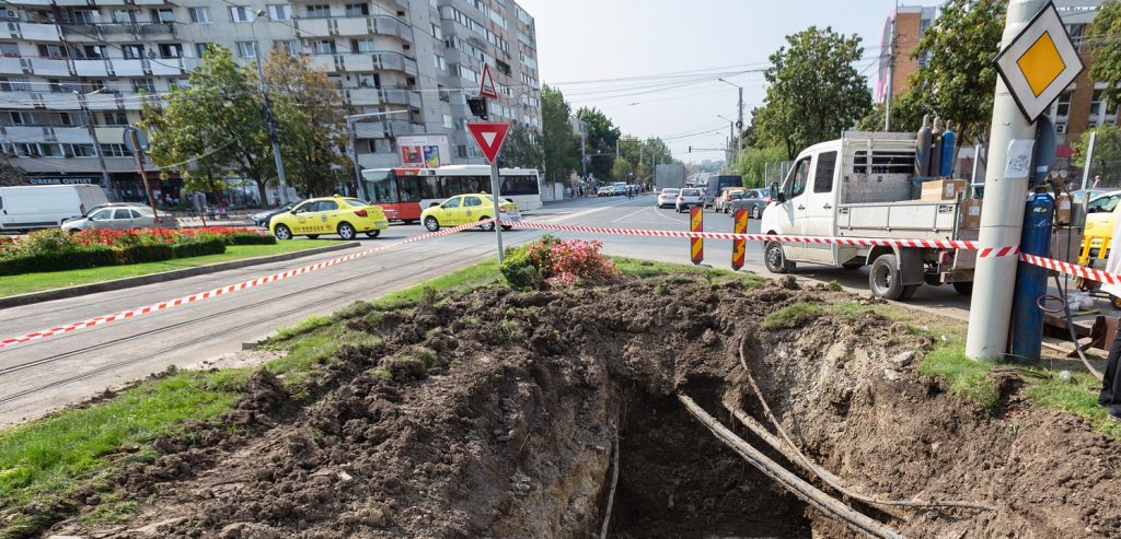Până marți, 4 septembrie, constructorul s-a angajat că va face lucrări subterane (fără șanț deschis) între capătul șos. Naționale și rond (tronsonul marcat cu albastru punctat).