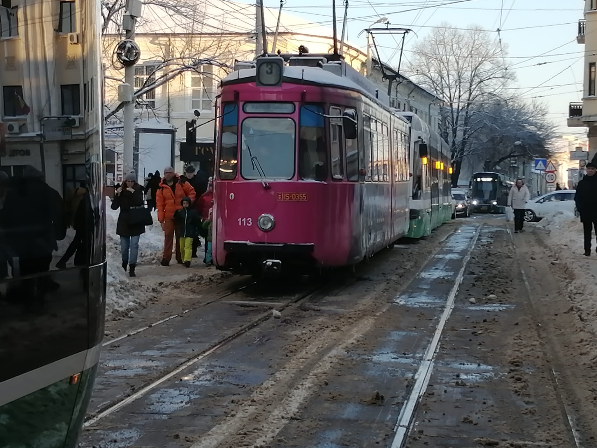 UPDATE (FOTO) Iași: Circulația tramvaielor, blocată în centrul orașului, după ce o garnitură s-ar fi defectat