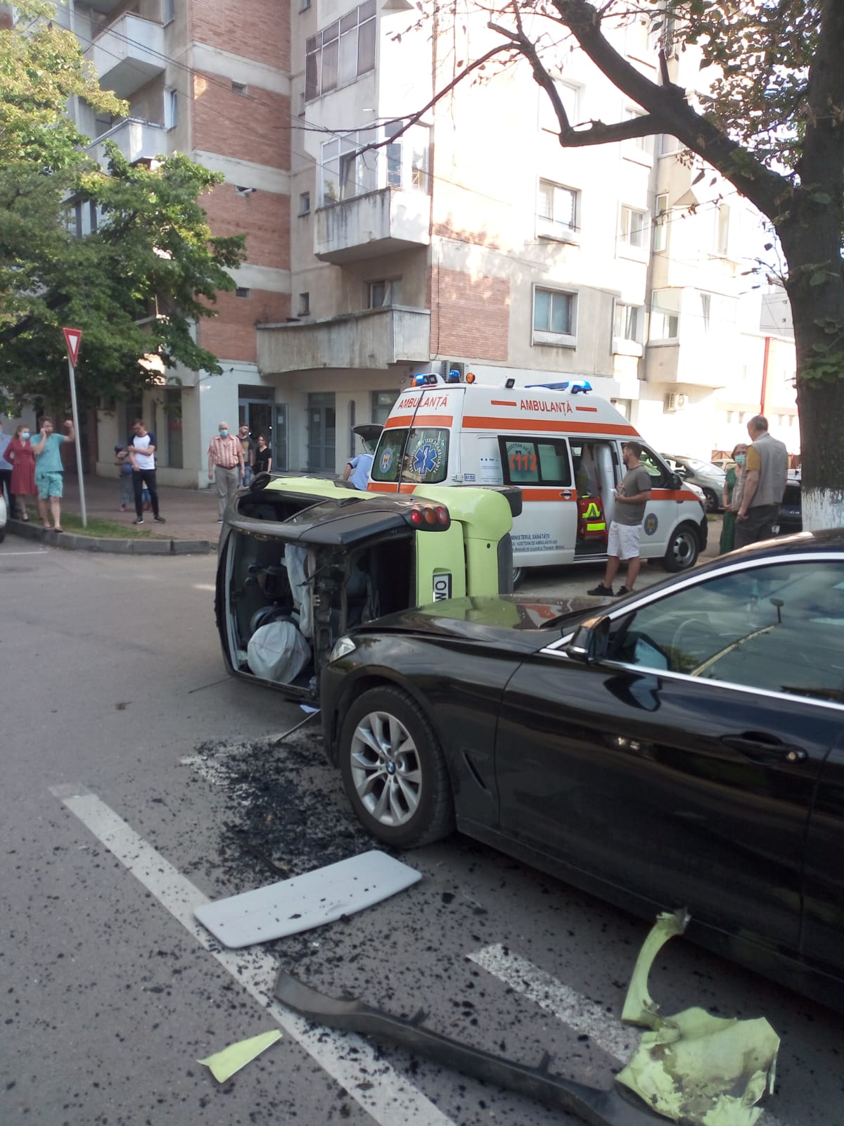 Două autoturisme s-au ciocnit violent. Ambii șoferi au avut nevoie de îngrijiri medicale.