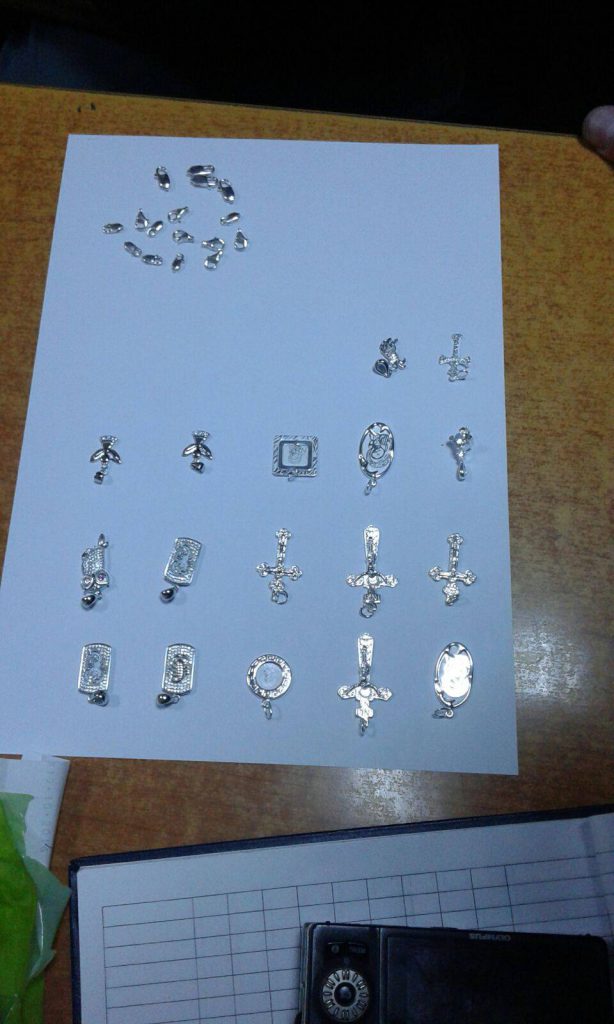 Cu ocazia controlului specific, echipa comună formată din poliţişti de frontieră şi inspectori vamali a descoperit, în buzunarele hainei Galinei A., 155 bijuterii din metal alb (presupus a fi argint), în greutate totală de 0,610 kg pentru care femeia nu a putut prezenta documente legale.