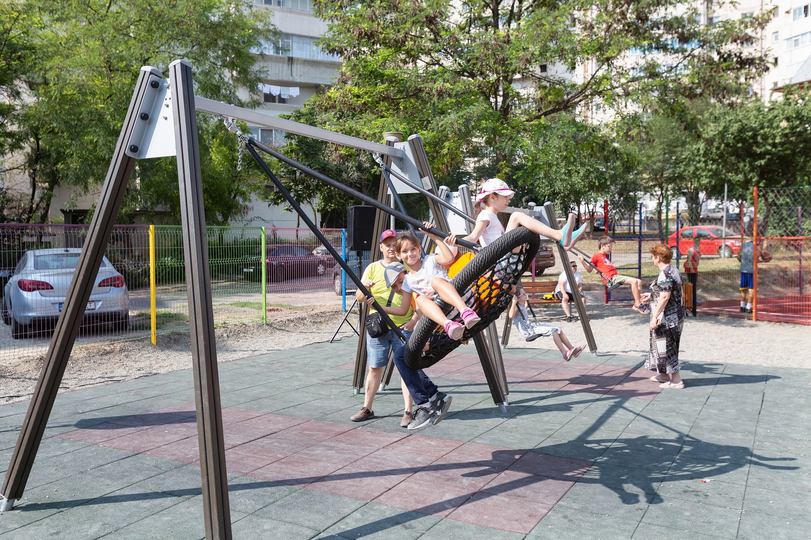 Parcul din șos. Nicolina, nr. 27, bl. 958 face parte dintr-un prim „pachet” de 22 de spații de joacă, împărţite în două loturi de execuţie, la care lucrările fie au fost deja finalizate, fie continuă și în această perioadă.