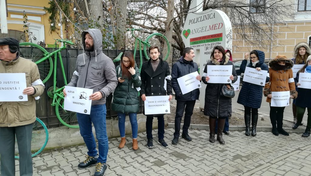 (FOTO) IAŞI: Protest al societăţii civile faţă de ordonanţa de urgenţă emisă de Guvern care modifică legile justiţiei