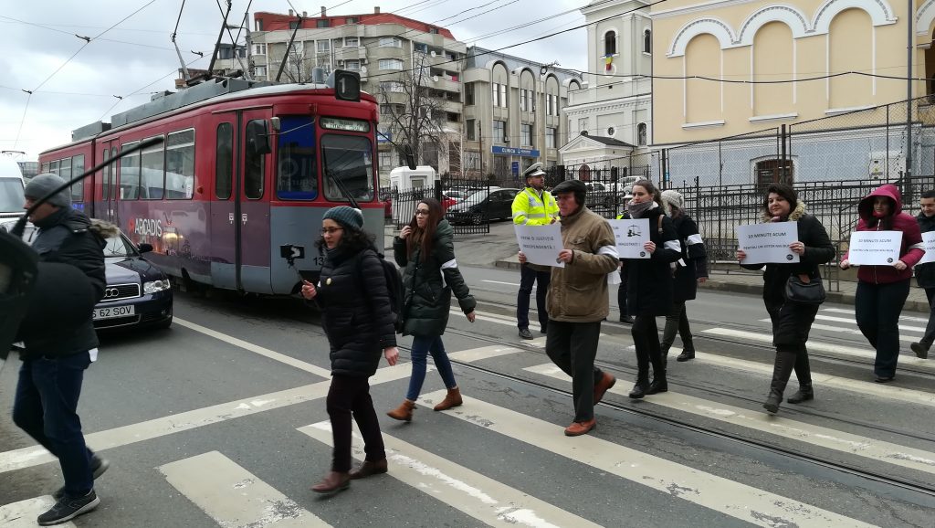 Protestatarii au traversat continuu principala cale de acces care leagă centrul Iaşului de cartierul Copou, în faţa Liceului Naţional.
