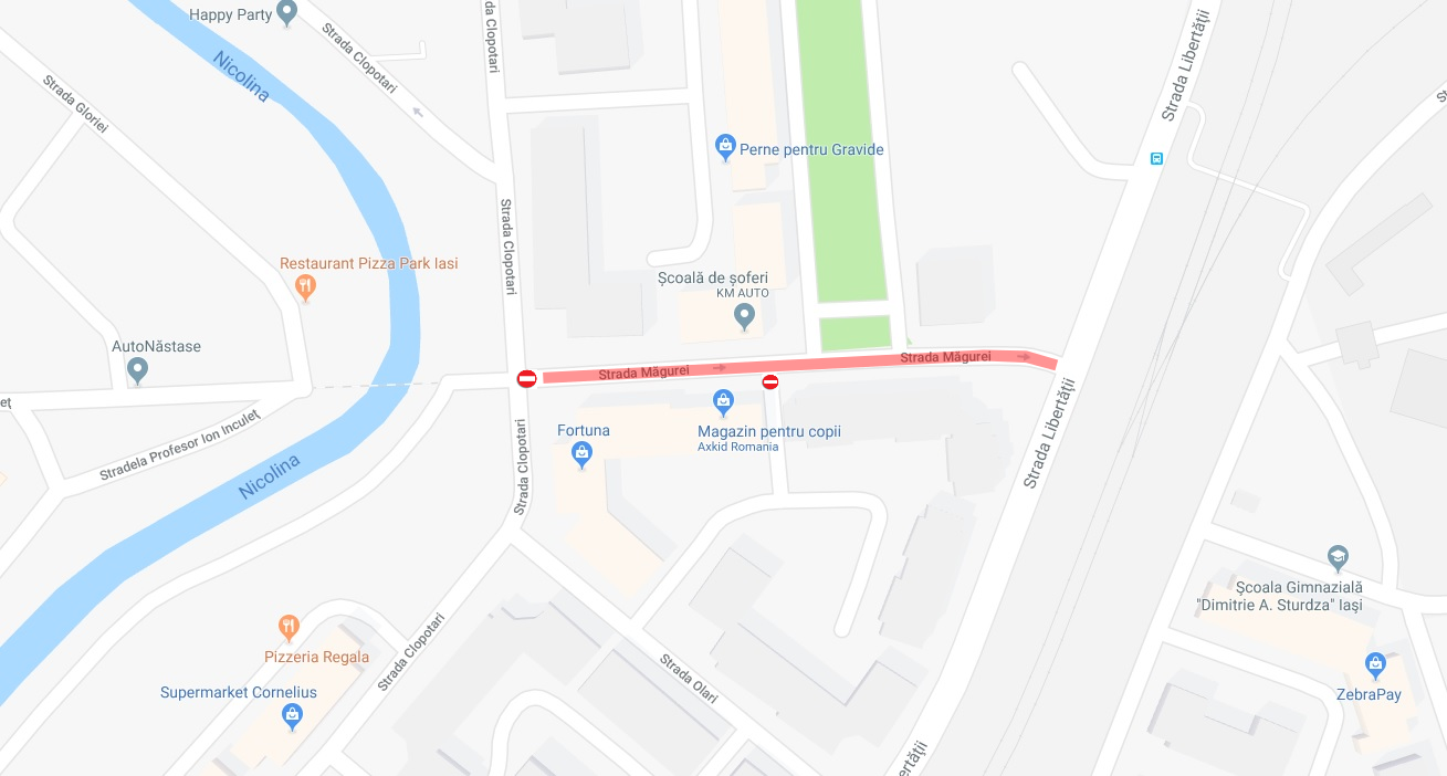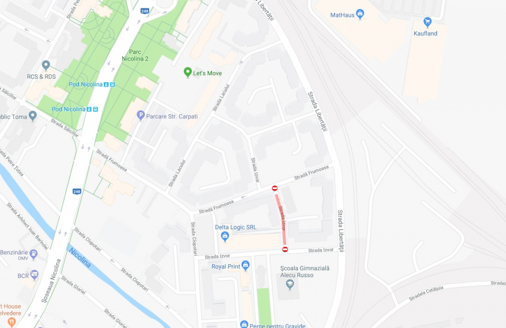 • strada Izvor din Nicolina II, de luni, 3 septembrie, până miercuri, 5 septembrie, strada Măgurei (tronsonul marcat) din Nicolina II, de luni, 3 septembrie, până joi, 6 septembrie;