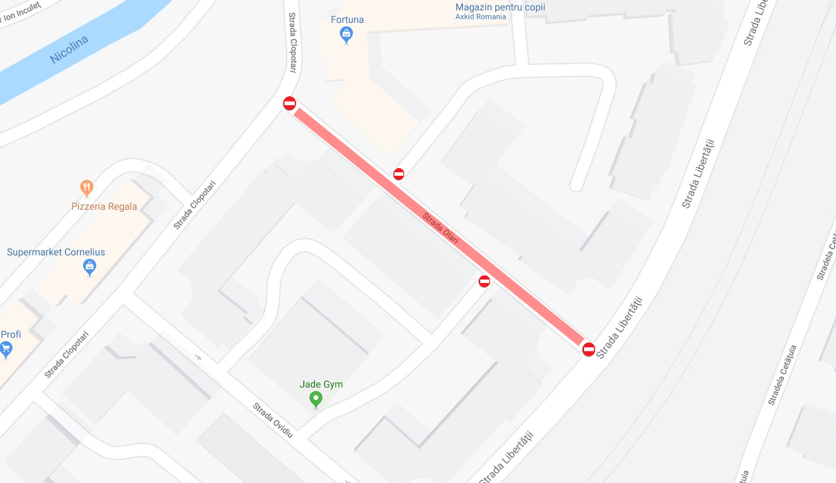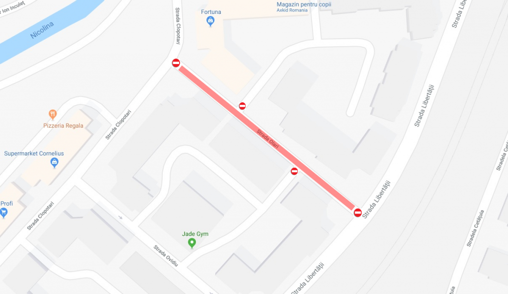 • strada Ovidiu (tronsonul marcat) din Nicolina II, de joi, 6 septembrie, până marți, 11 septembrie;