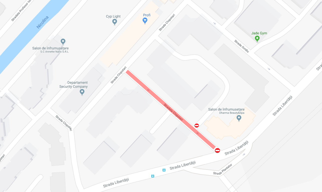 • stradela Clopotari (tronsonul marcat) din Nicolina II, de vineri, 7 septembrie, până miercuri, 12 septembrie.
