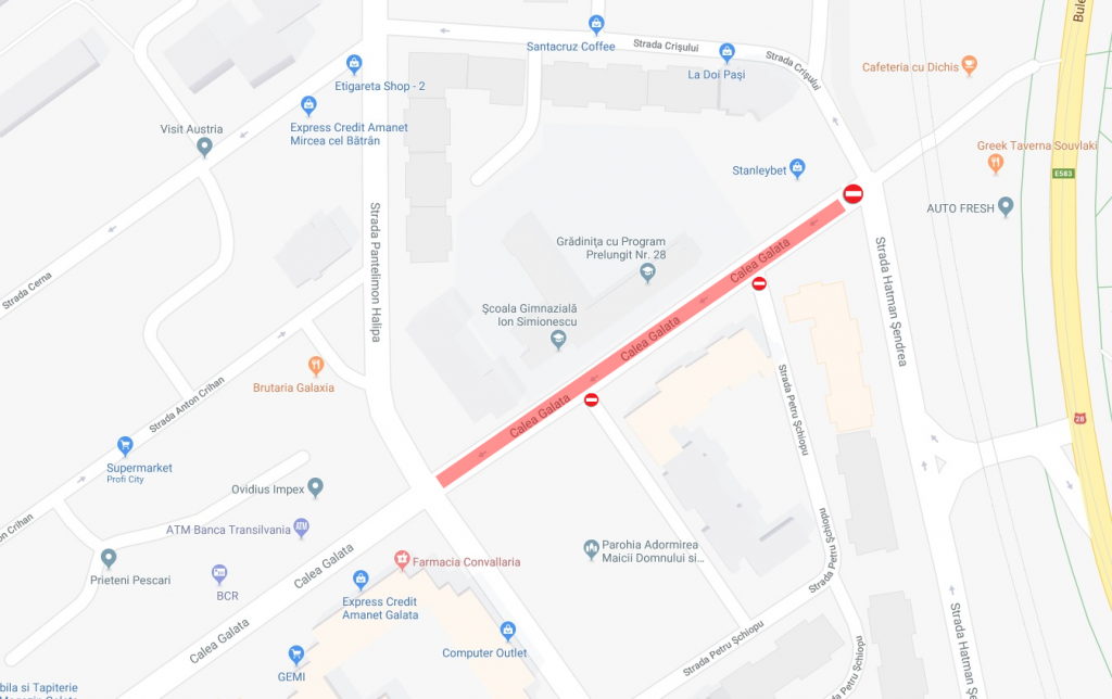 • Calea Galata (tronsonul marcat), de luni, 3 septembrie, până joi, 6 septembrie;